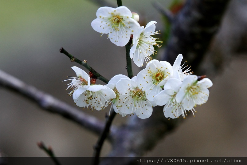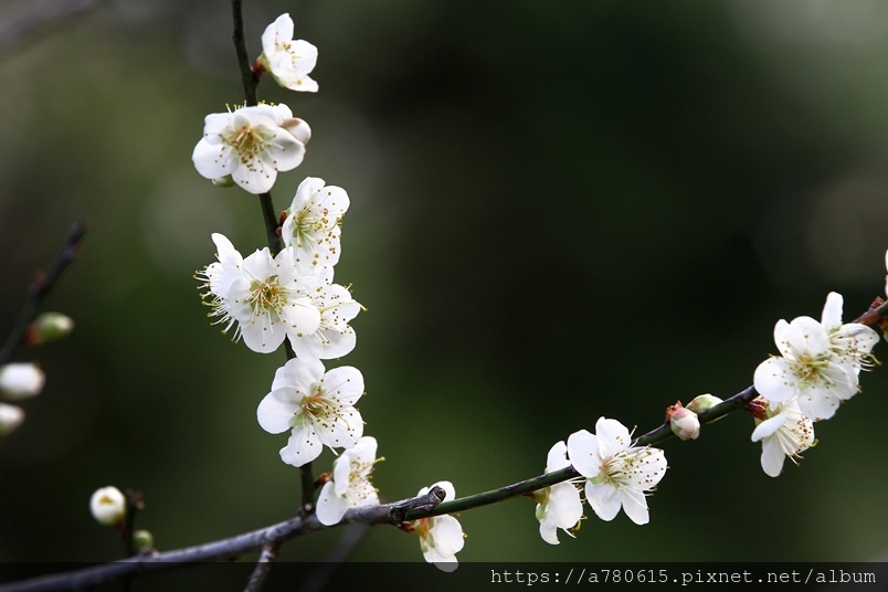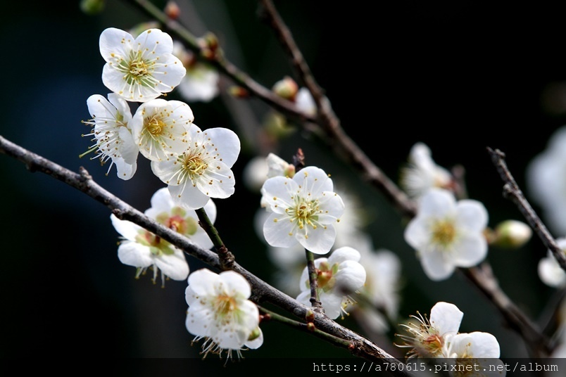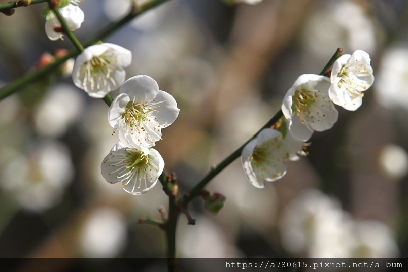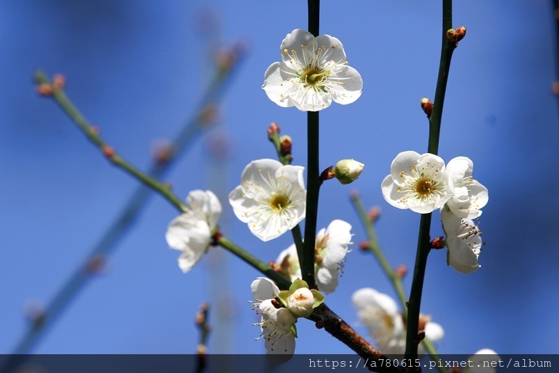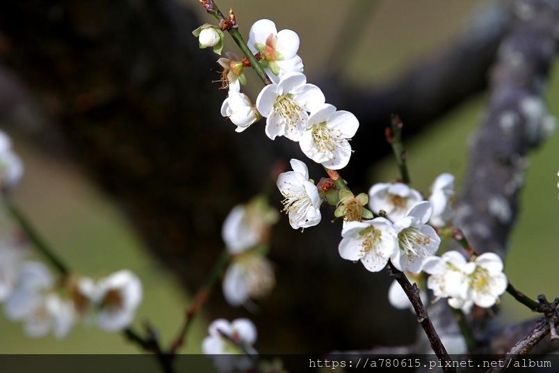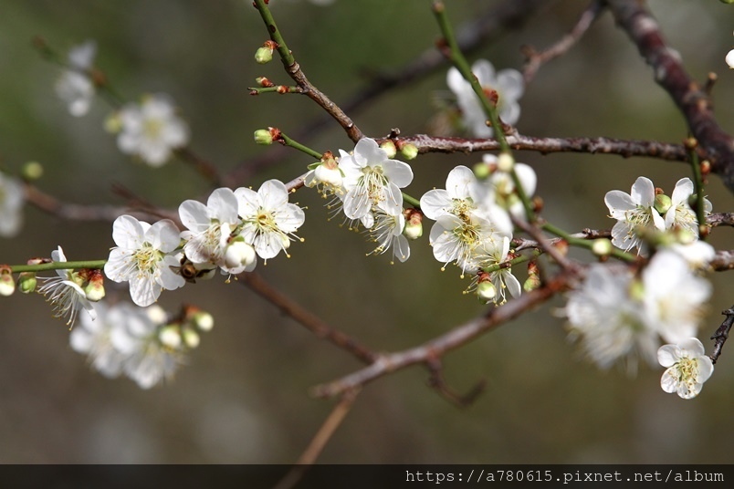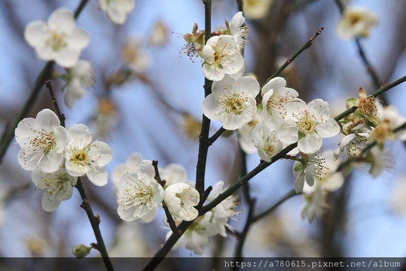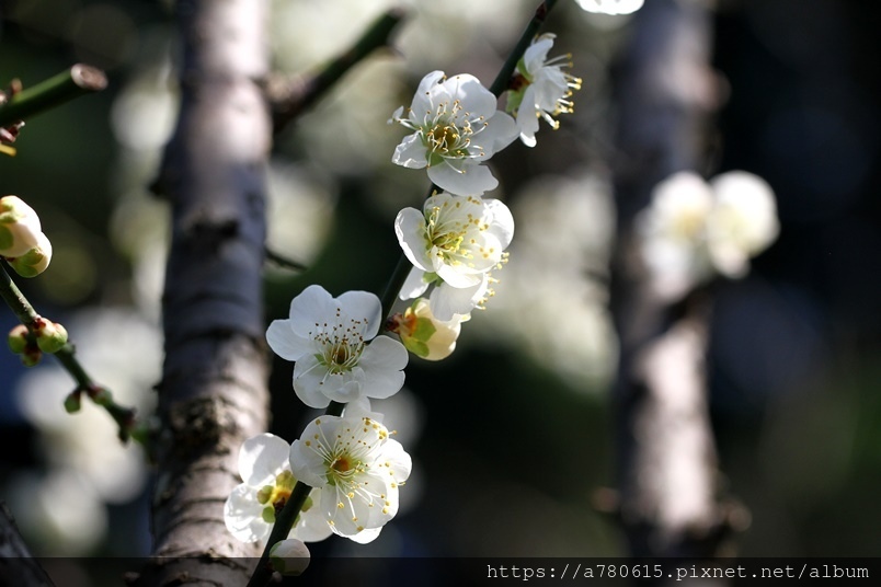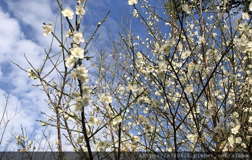 的梅園之一,梅花於冬日陸續綻放,白梅暄妍,暗香