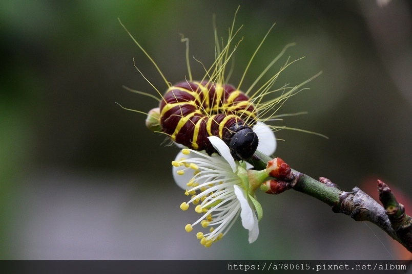 幼蟲身上有細毛很像蛾類的毛毛蟲,黑黃的條紋會隨