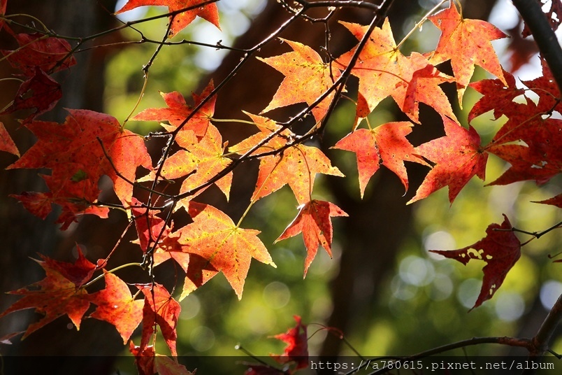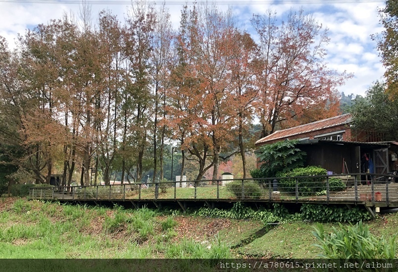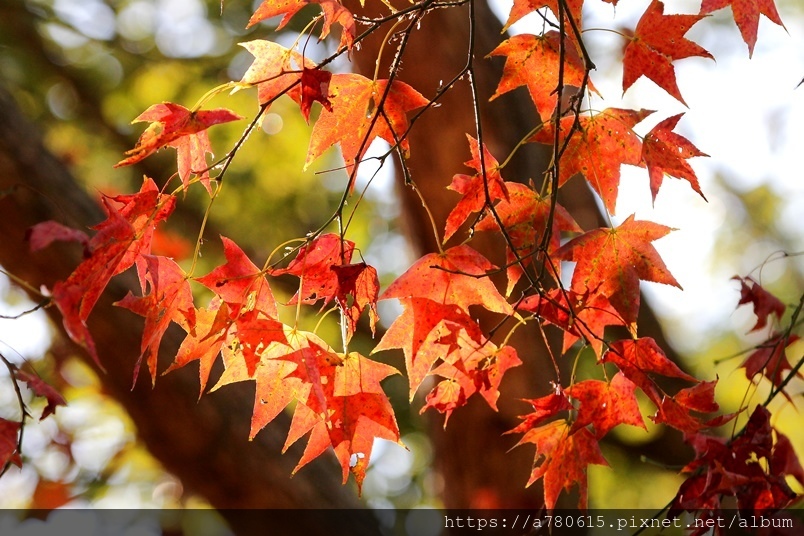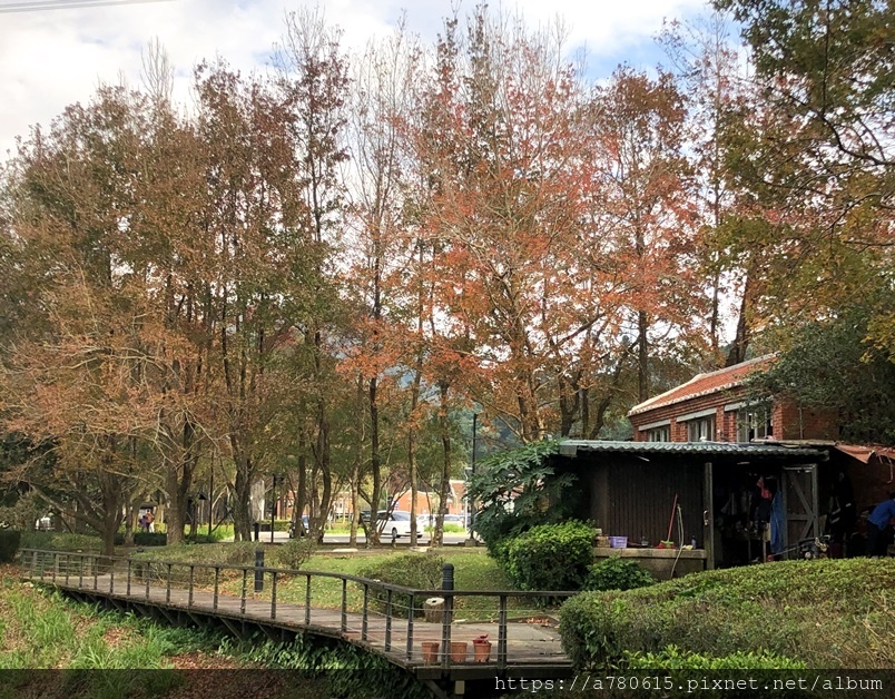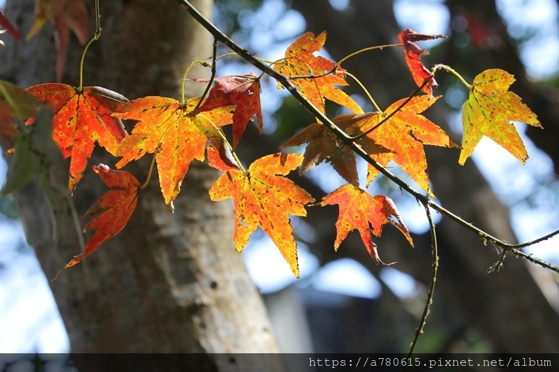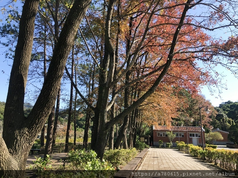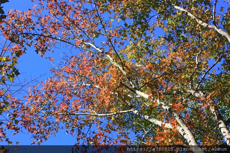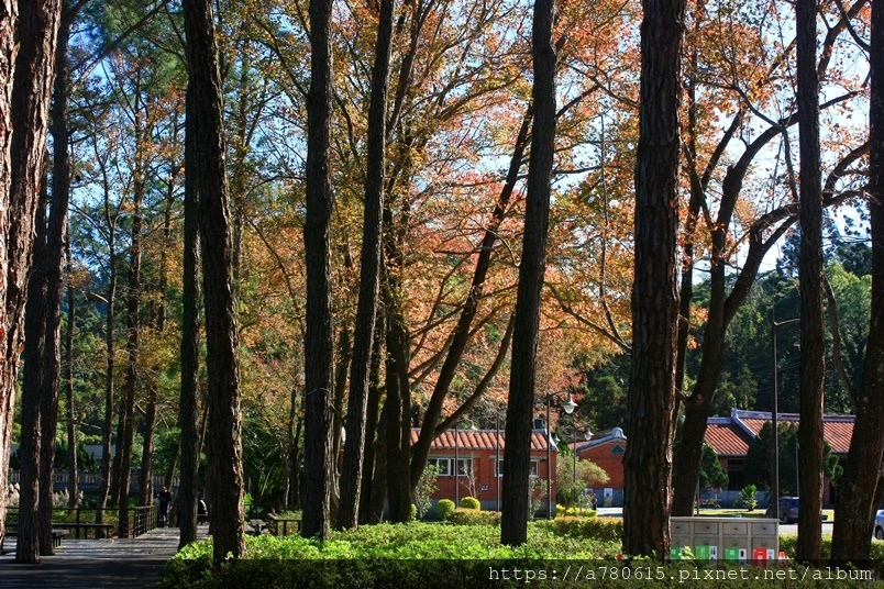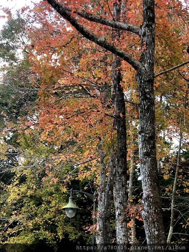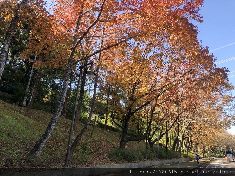 道兩邊也種上整排的楓香,現在樹葉已經染紅,楓
