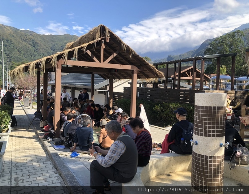 我去的當天是假日,湯池已經客滿,只好在戶外泡腳