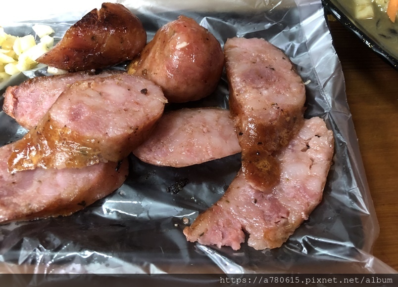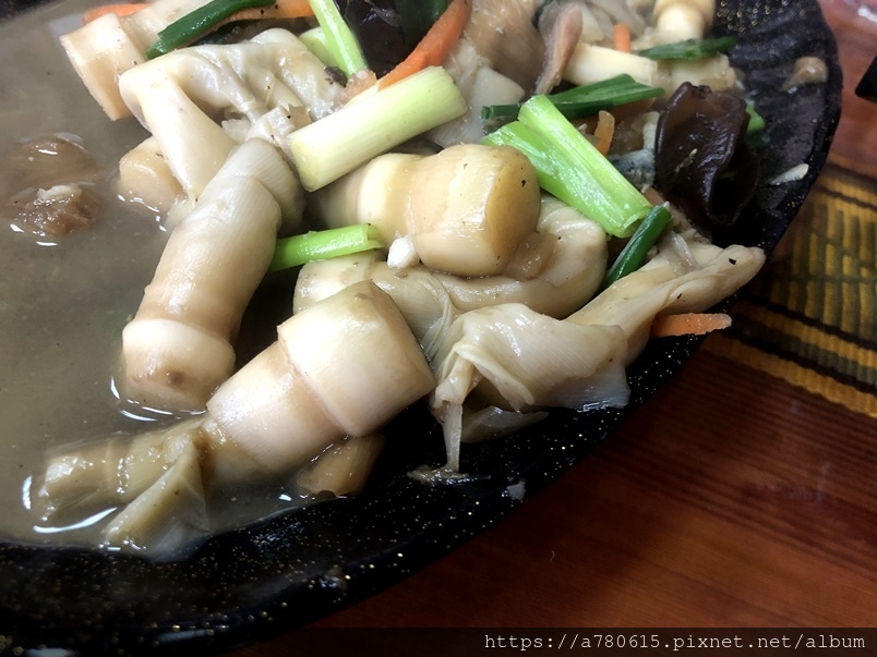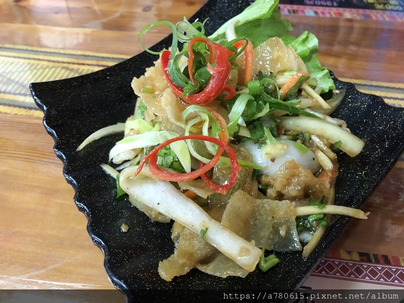 涼拌山豬皮、炒甘蔗筍和高粱香腸,另外再買了烤竹