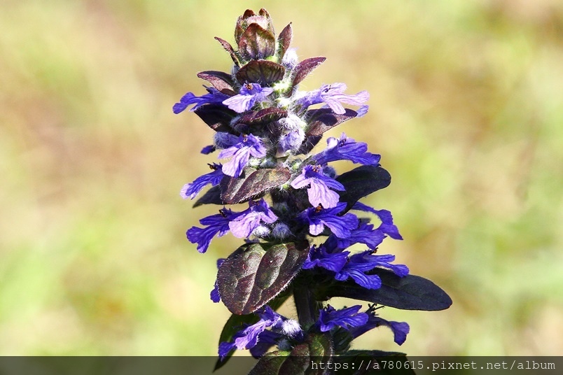 紫唇花原生於歐洲、西亞、依朗,屬於唇形科/筋骨草屬多年生草本植物,株高約15-20公分,會長出走莖。