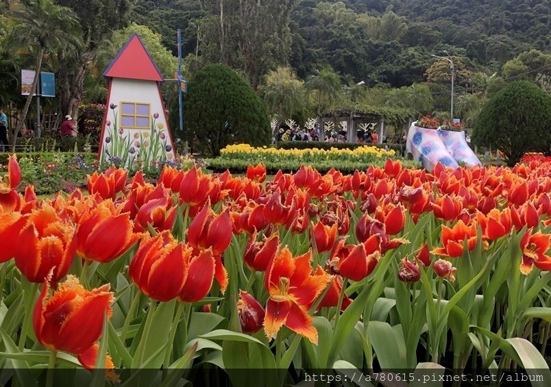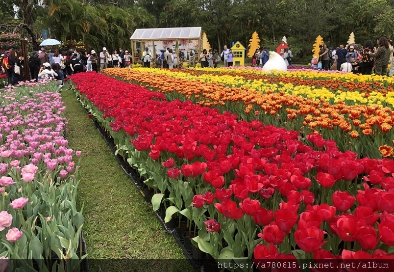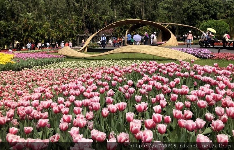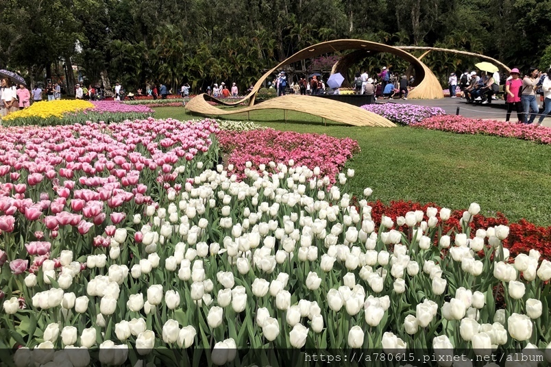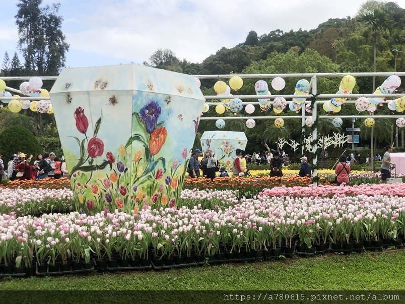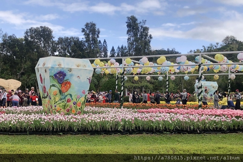 萬株鬱金香花,搭配各國的祈福文化概念設計,遊