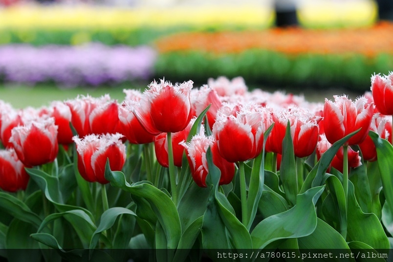 各種品種繽紛綻放,展現出五彩斑斕的美麗景觀。
