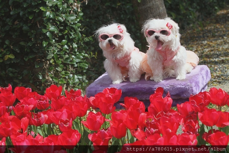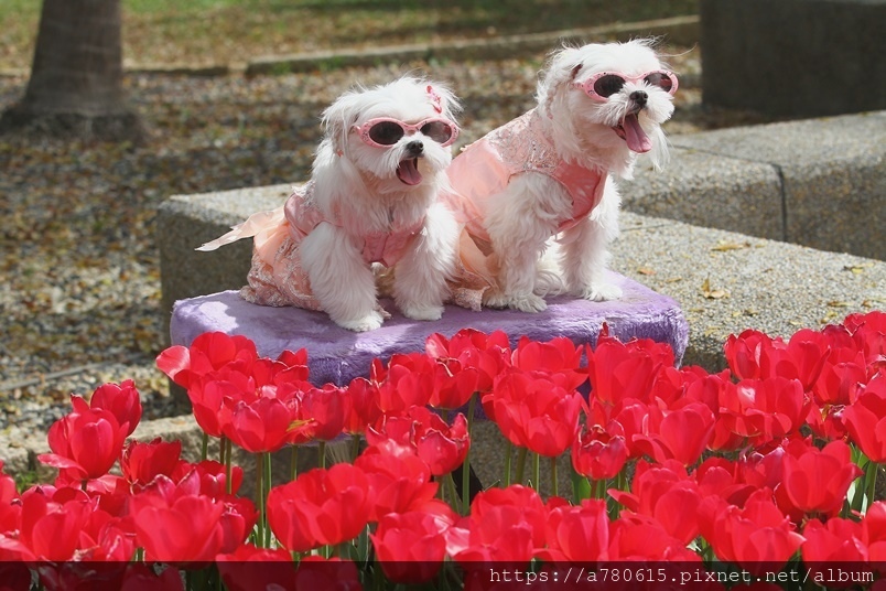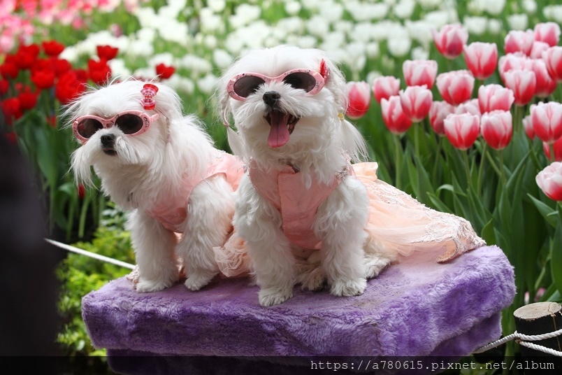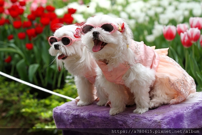 除了賞花,還有遊客帶著心愛的寵物來拍照,巧遇