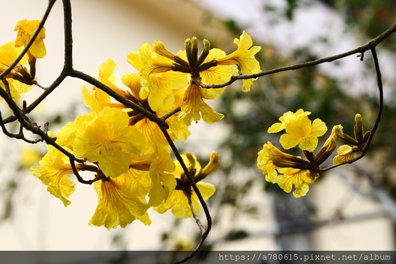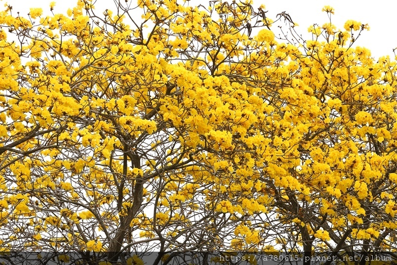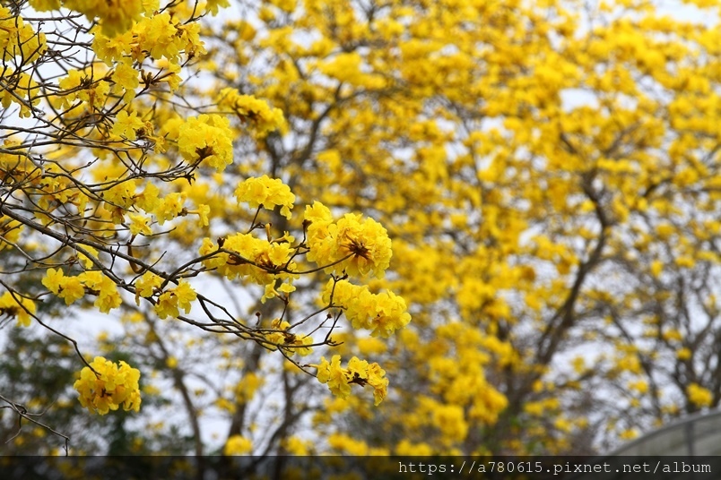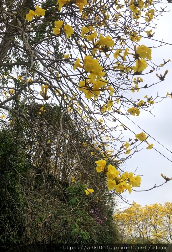 記得前幾年黃花風鈴木盛開炸裂,形成黃色風暴,鍾
