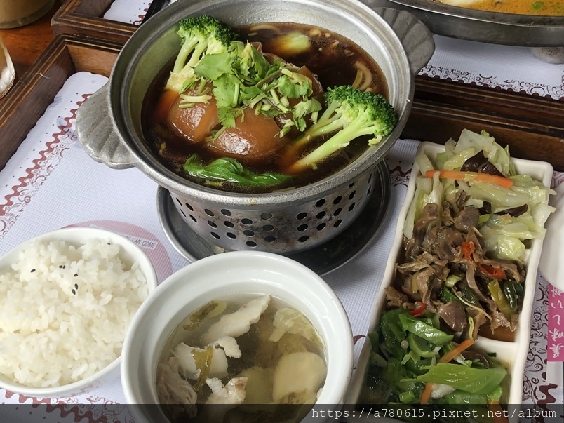 東坡肉偏甜,餐點大致還可以,唯餐具有破損,是