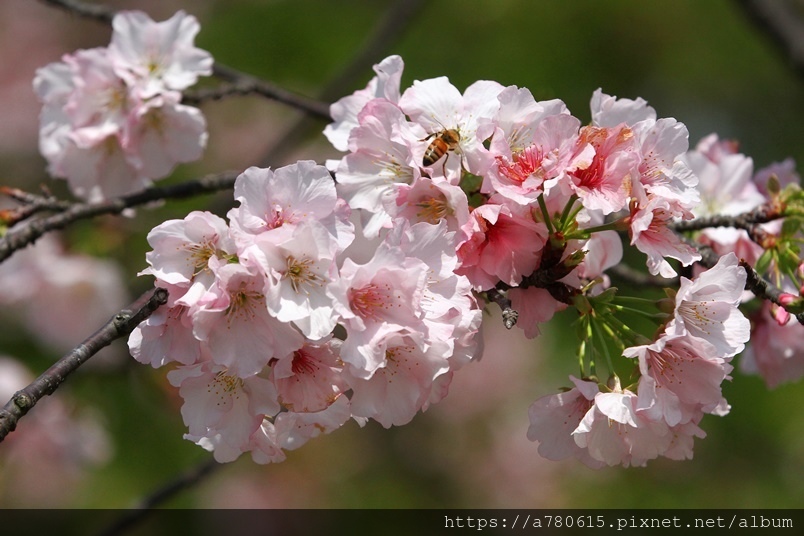 時特別吸引蜜蜂採蜜。盛開時,整樹嬌嫩的粉紅色澤,