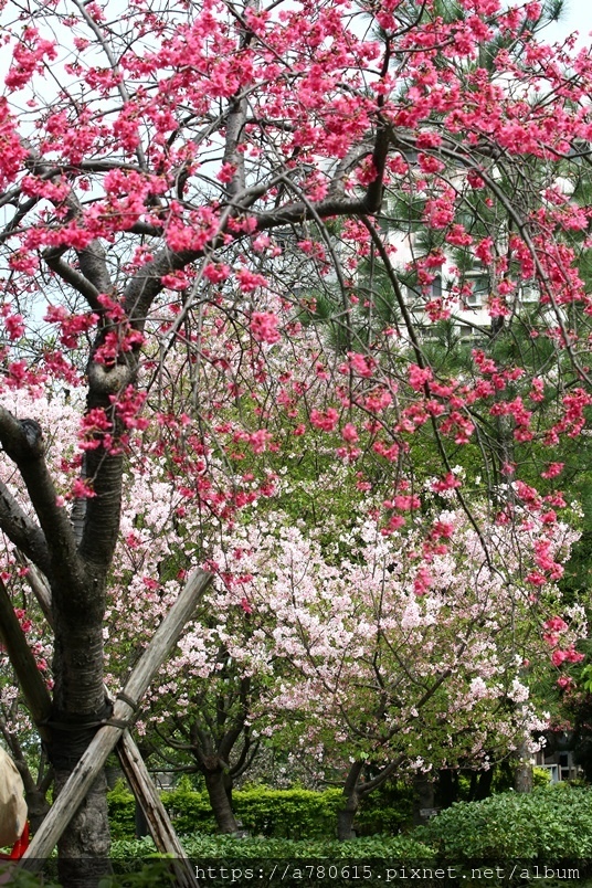 雖然種的沒有中正紀念堂多,但只要有幾棵盛開,
