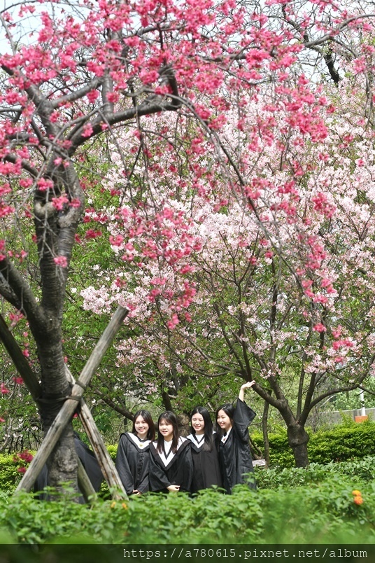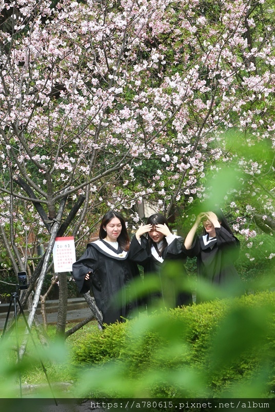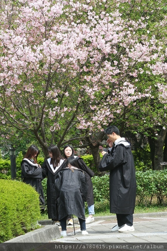 學生們穿梭在櫻花林間拍畢業照,也有新人也來拍
