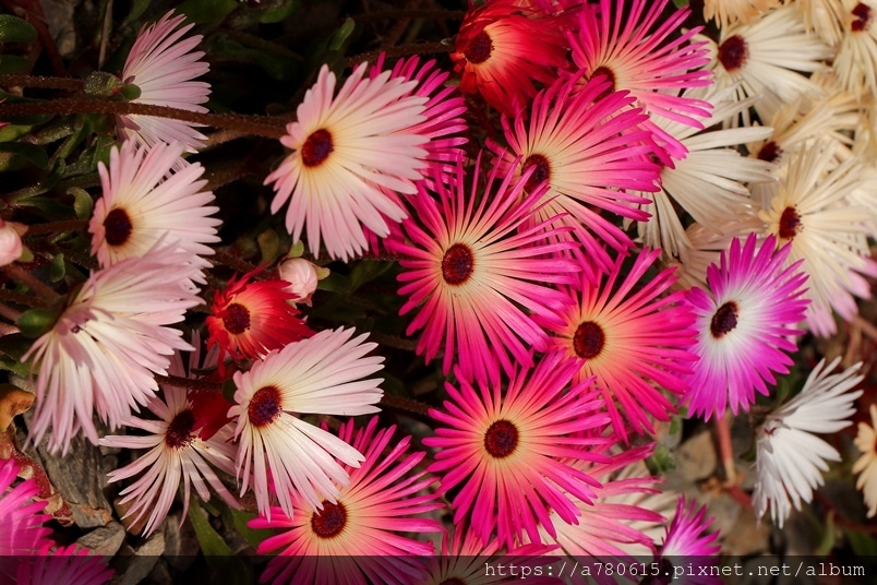 彩虹菊的花朵與松葉牡丹、馬齒牡丹一樣,在陽光充