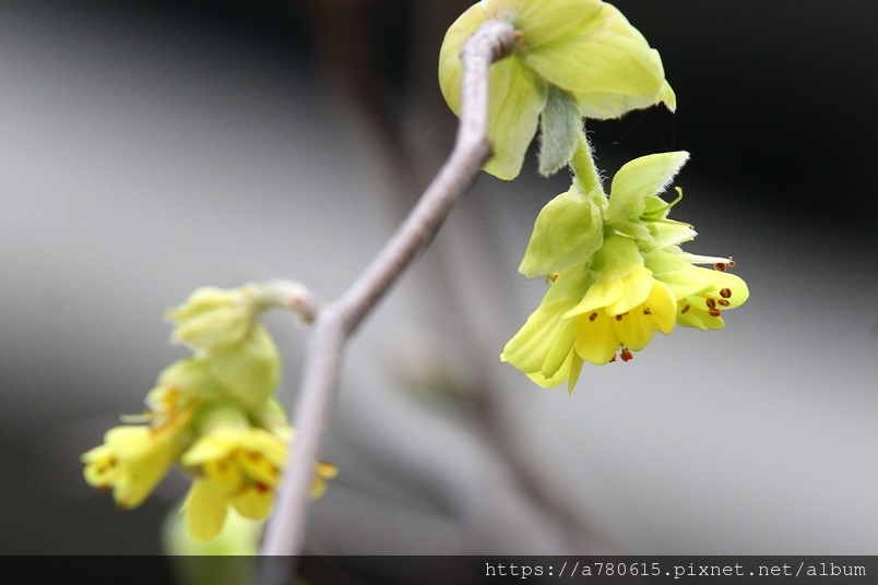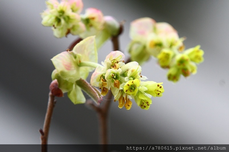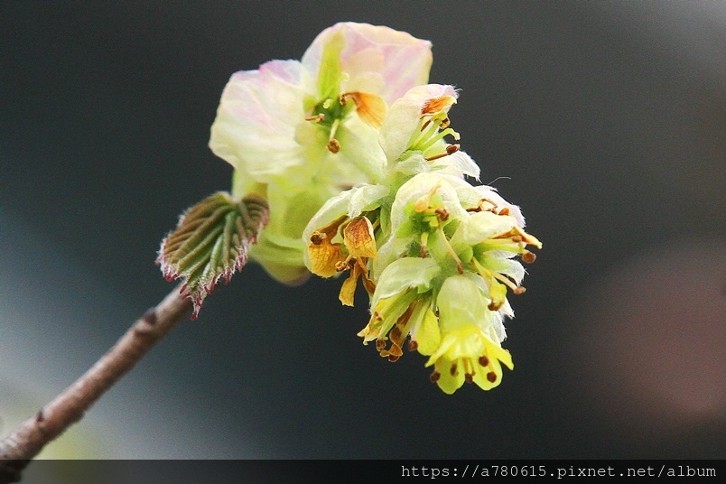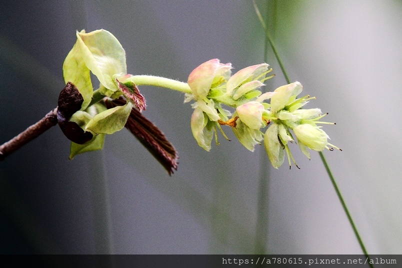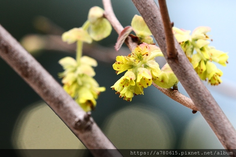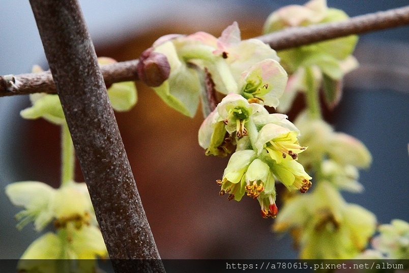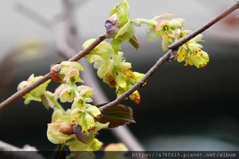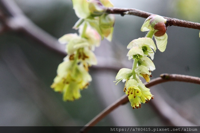小花排列為下垂的總狀花序,花期3-4月。