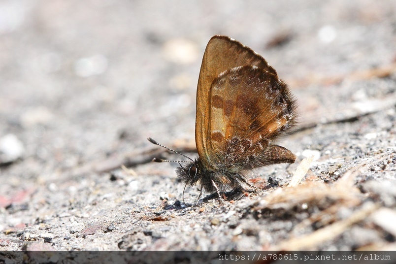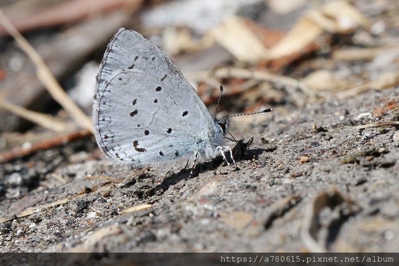 歪紋小灰蝶又名尖灰蝶,一年一世代中型灰蝶種類,