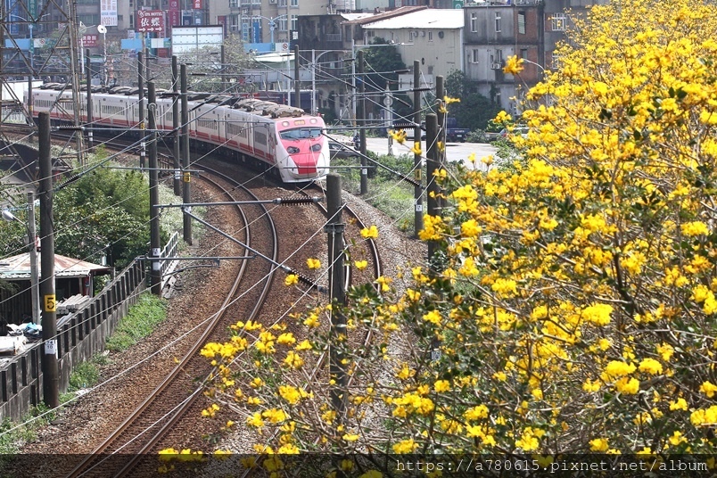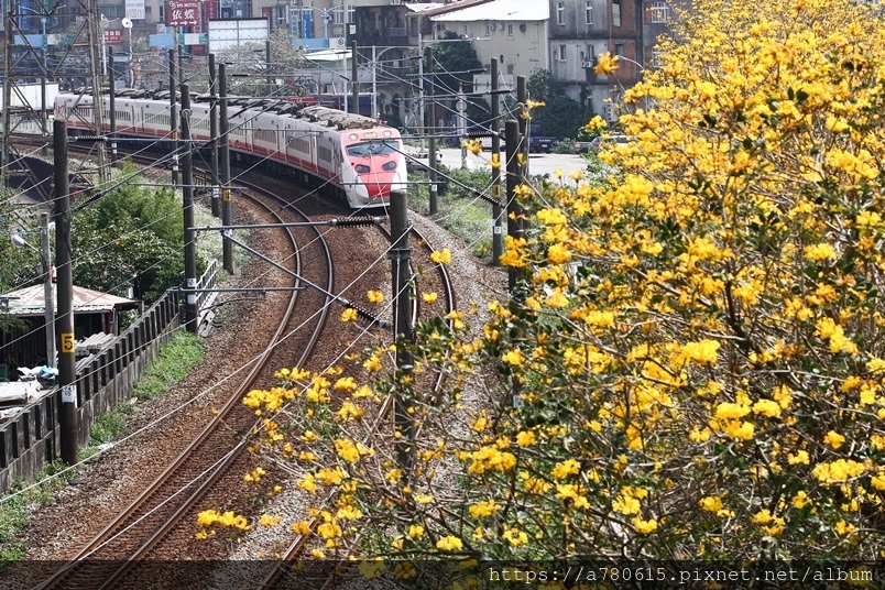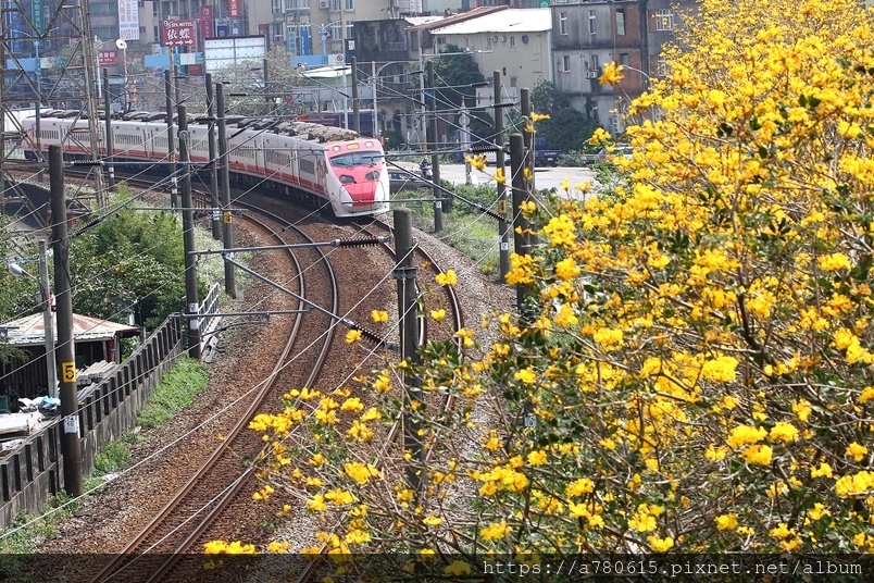 台鐵埔心段,有整片黃花風鈴木,因為緊鄰鐵道,當
