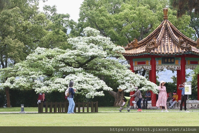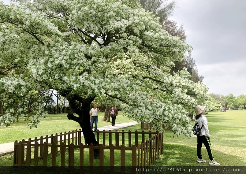 來卻是有些年紀的老樹了。遊客多集中花開若白雪的樹