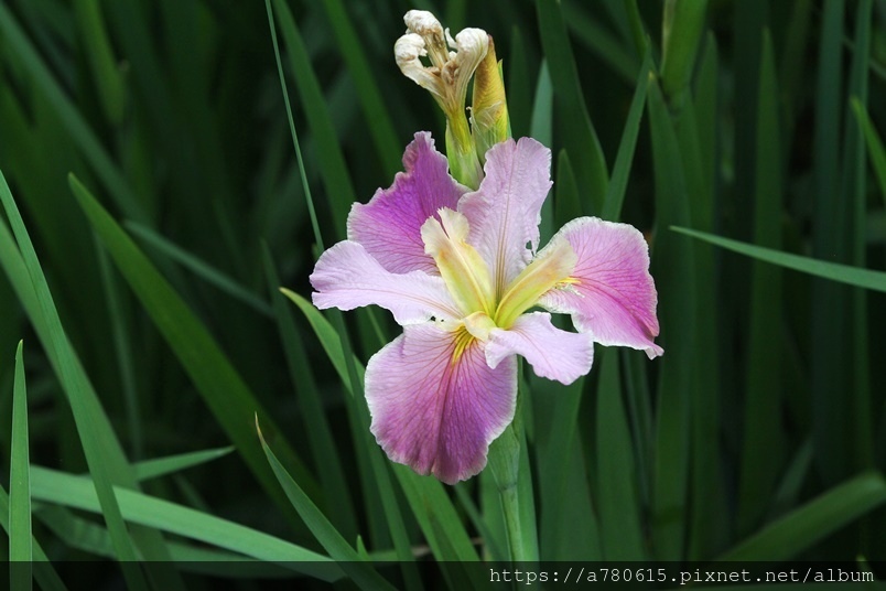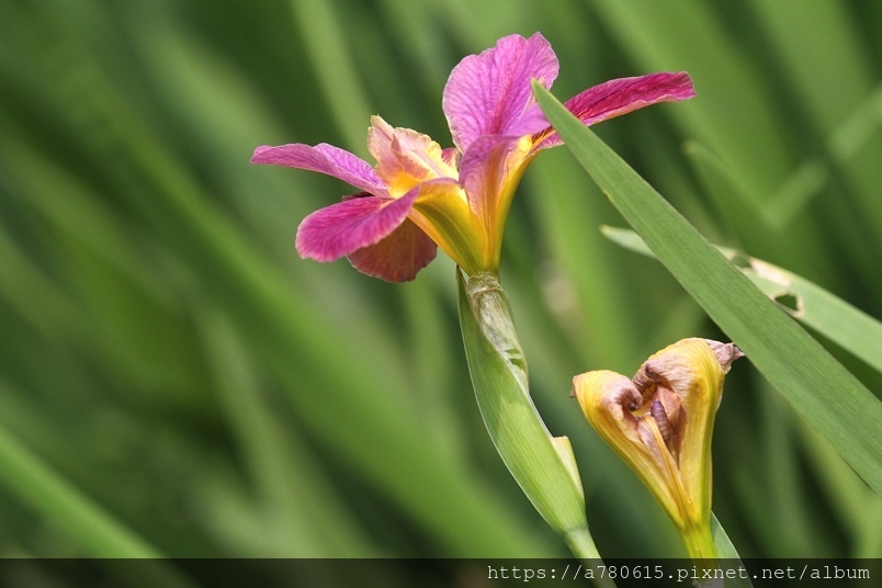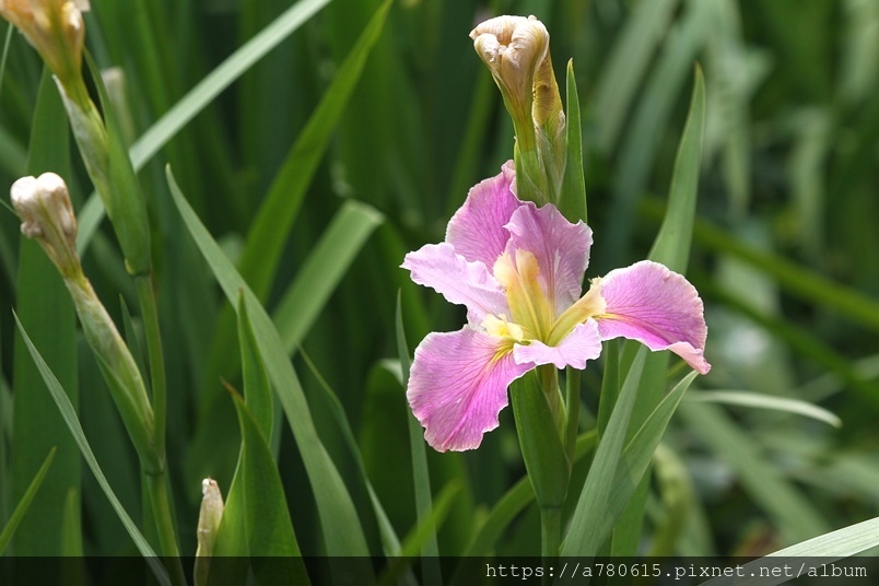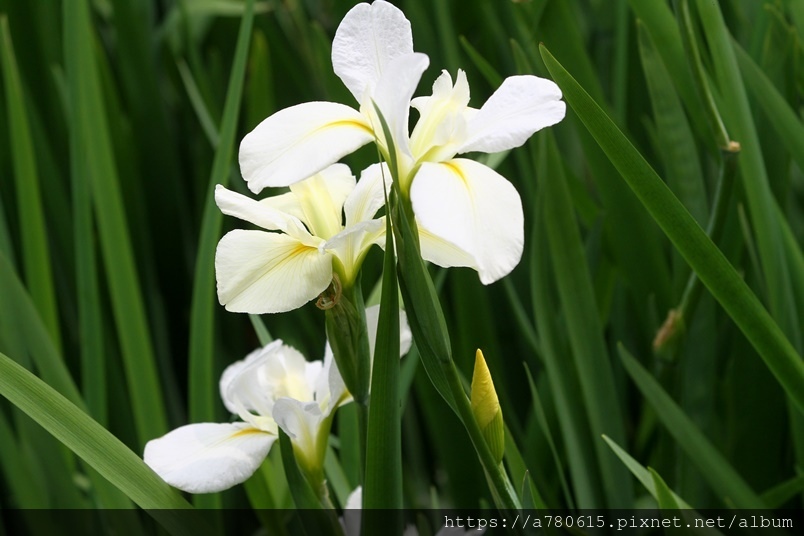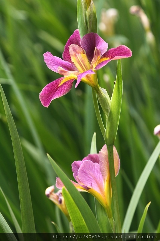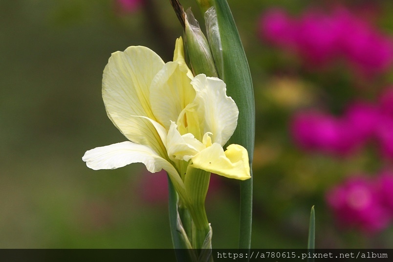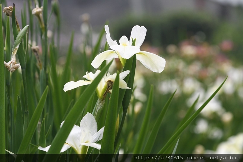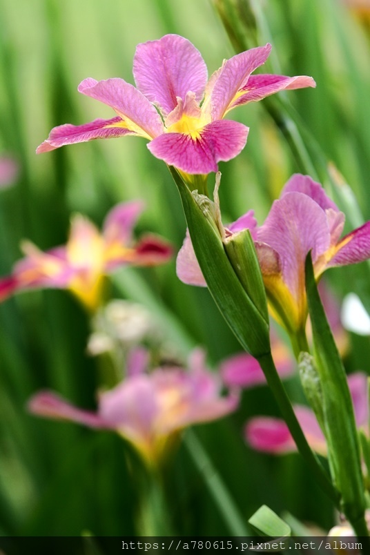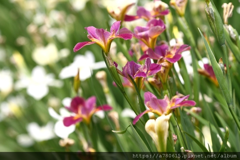 目前正值鳶尾花盛開時,白、粉、紫、紅、黃,五種