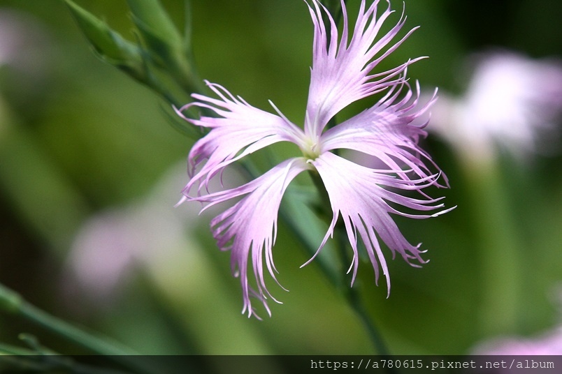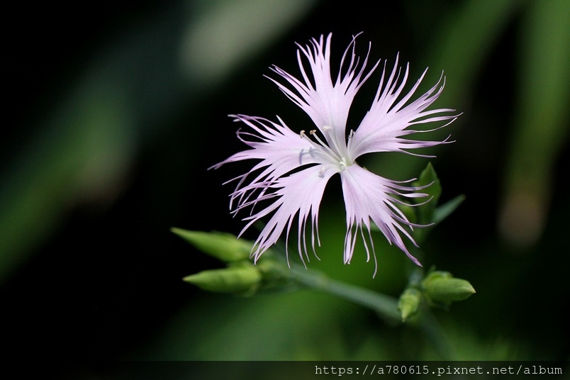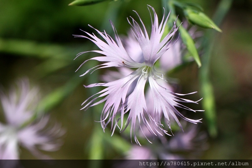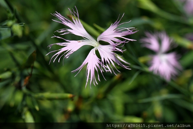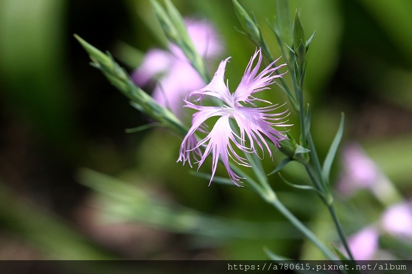 清水山石竹花朵具優雅香味,葉片表面覆有白色粉狀質感 為其最大特徵。