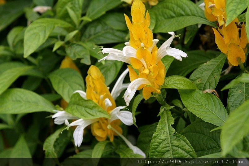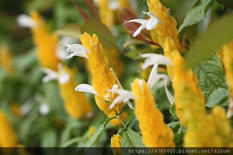苞片為花朵,實則為變形葉,突出的白色唇形花才是