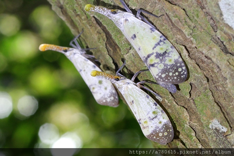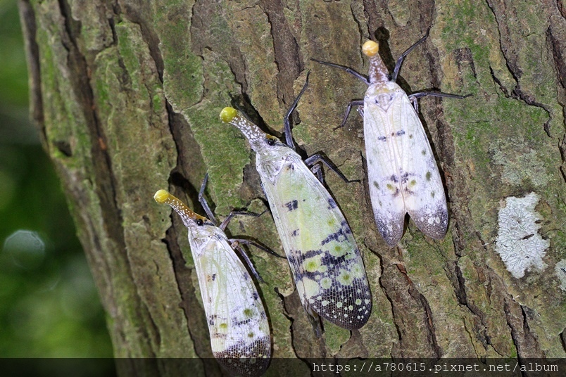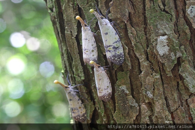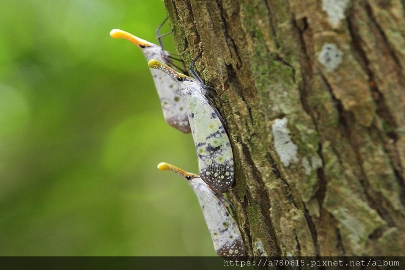 大的,成蟲於5~8月出現,寄主烏桕或山桕樹幹上,群體