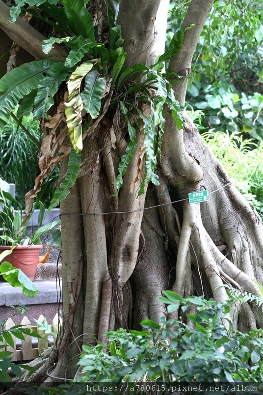 黃果垂榕為桑科榕屬大喬木,高可達20公尺以上,具有下垂的大氣根,常深入地下,形成許多支柱的樹幹;樹皮灰白色或灰褐色,有淺橫條紋,老幹常腐蝕中空。