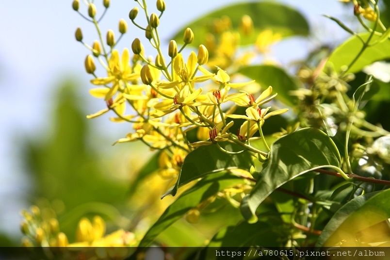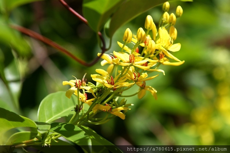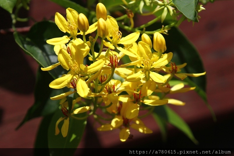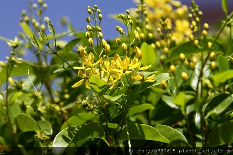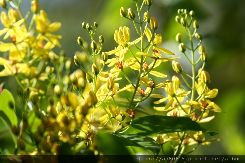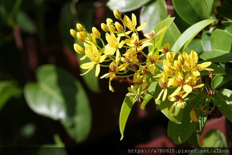 金黃的花朵,總是成串成串的綻放著,跟金英樹長得