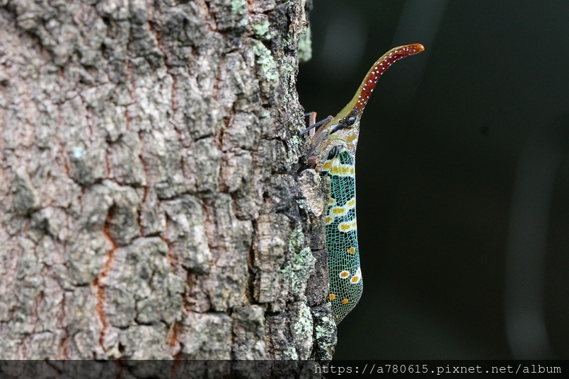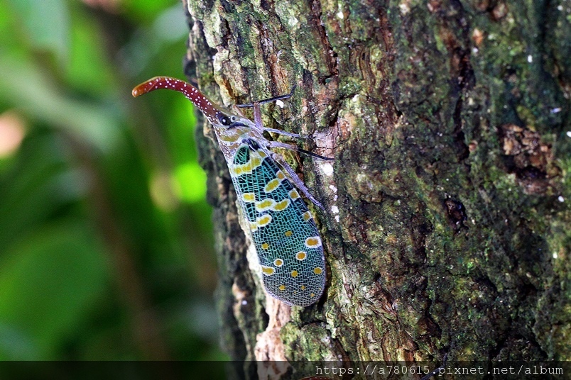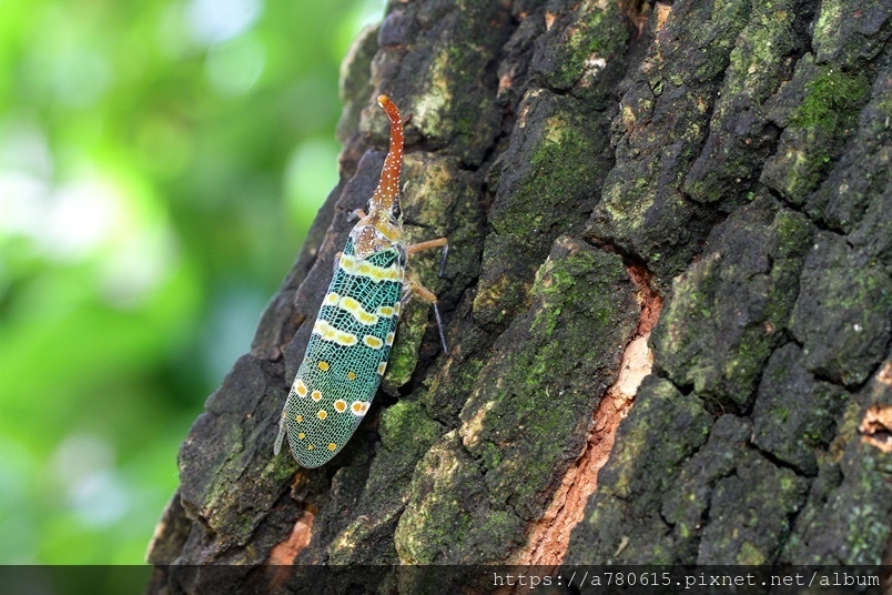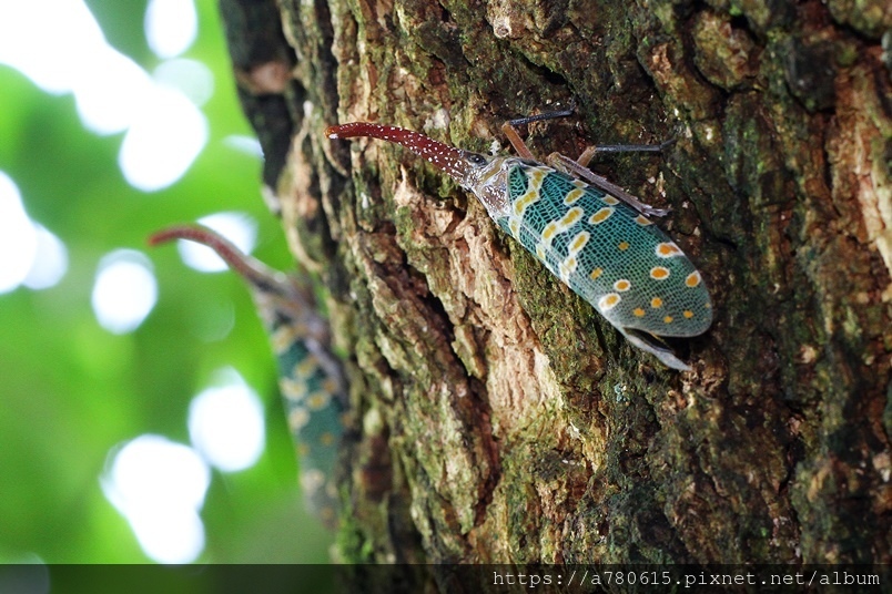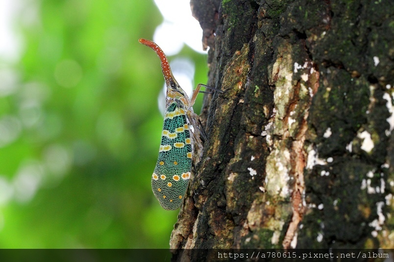美麗的優勢種蠟蟬,牠主要以刺吸式口器吸食龍眼樹枝幹