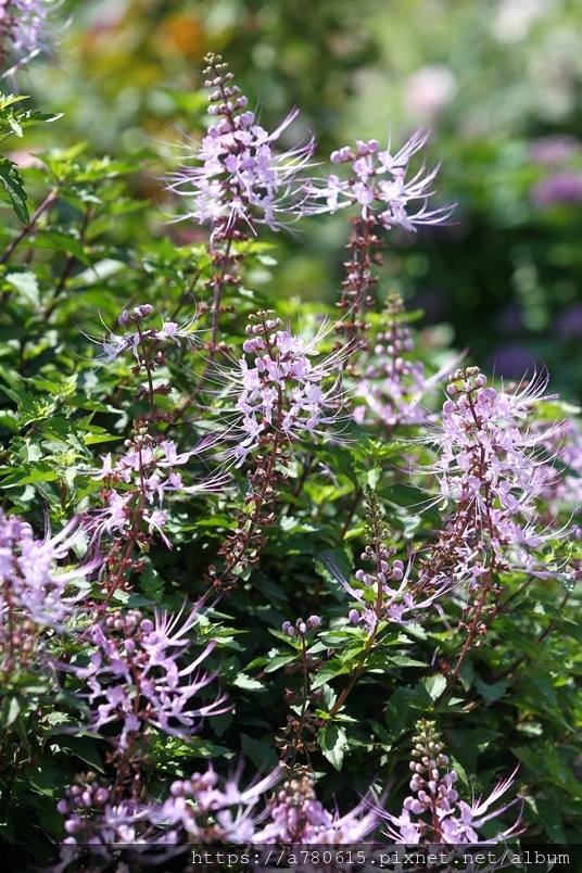 總狀花序,頂生。花色有白、紫兩種,繽紛綻放,非常吸睛。扦插即活,屬於好照養的景觀植物。