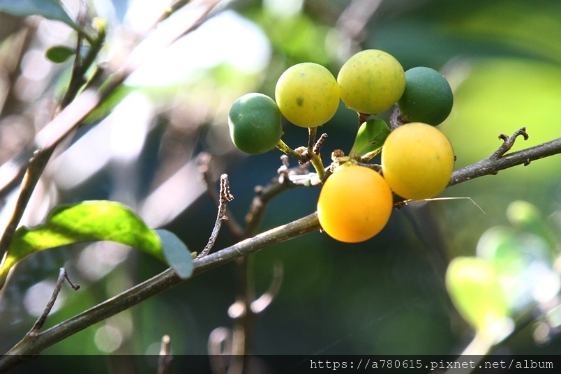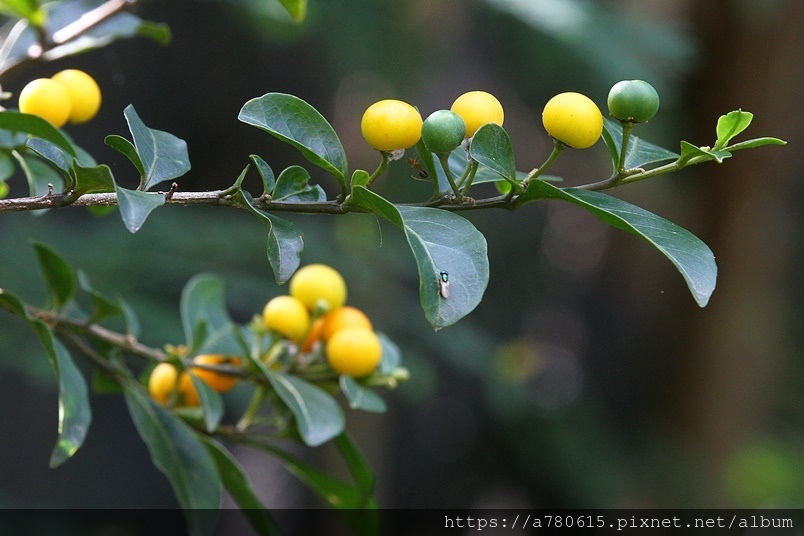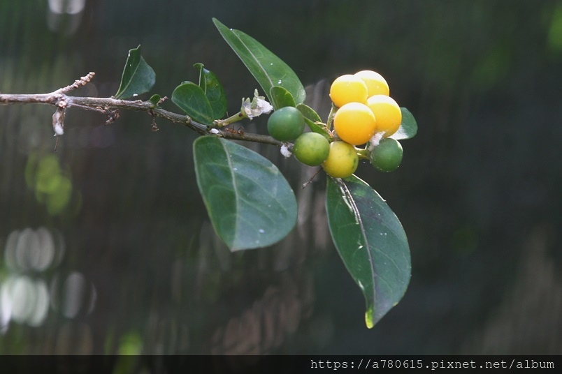 漿果幼果綠色,成熟後漸轉成橙黃色。多果串連如念珠,故