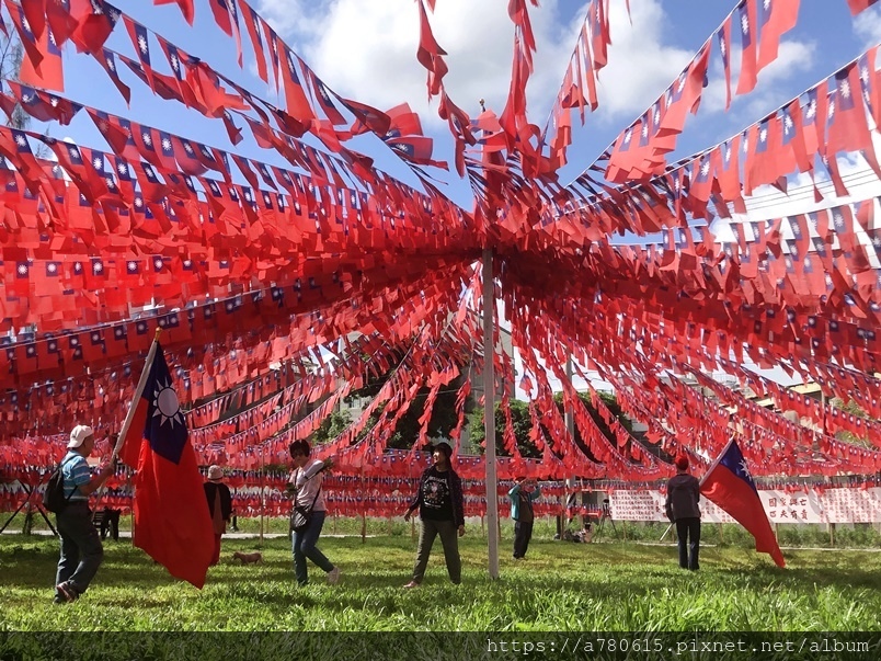 掛大國旗,公園現場懸掛小國旗,同時協調借用國軍