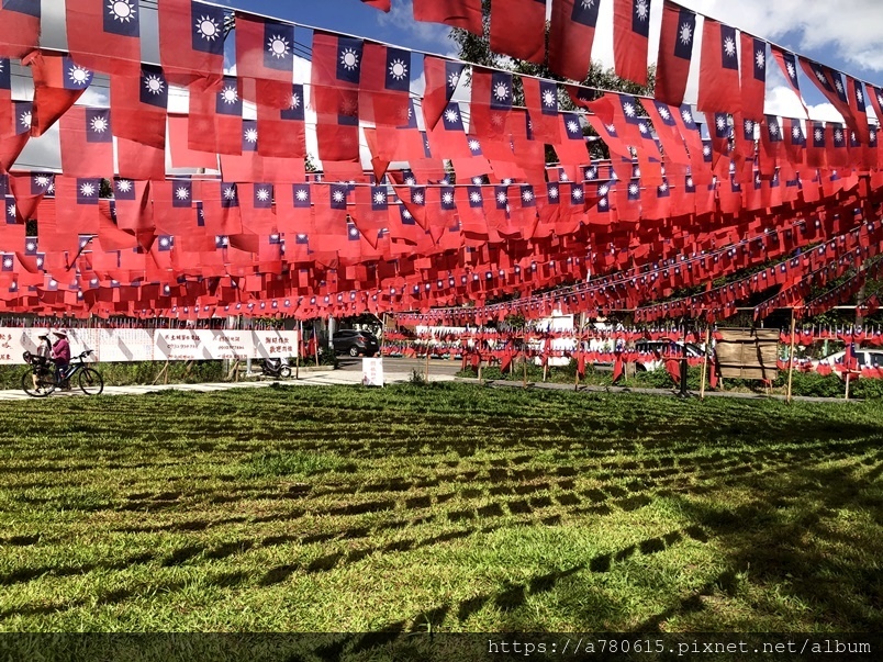 圓環旁公園,現已掛滿超過2萬面國旗,並將於國慶日