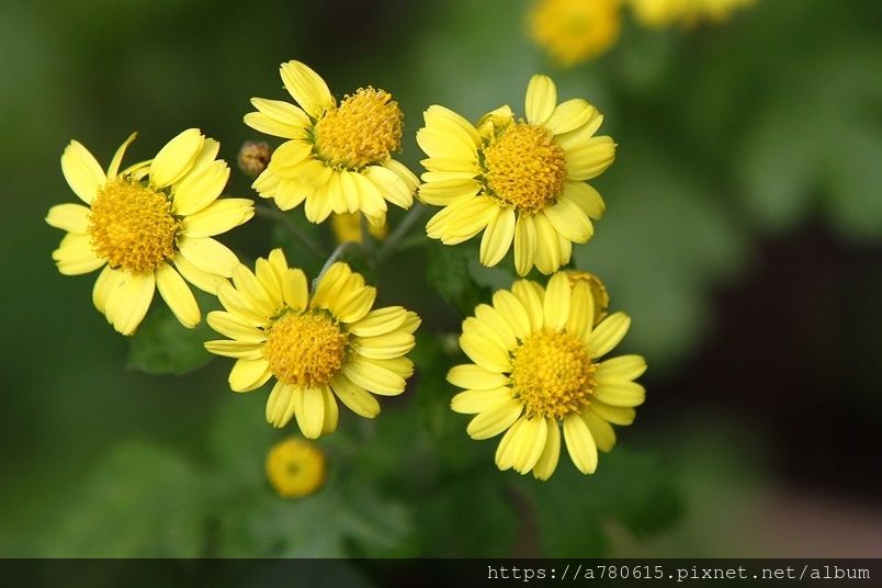 頭花直徑約1.5 cm,總苞,寬約8mm,3-4輪,舌狀花黃
