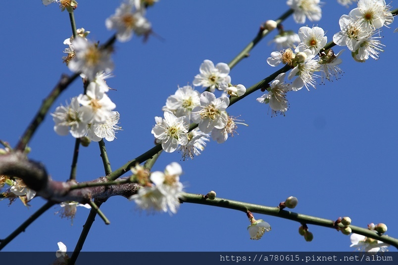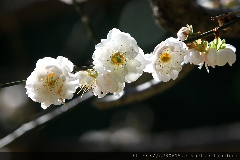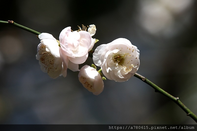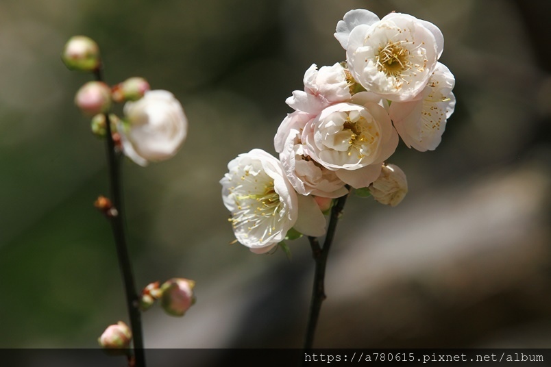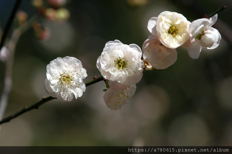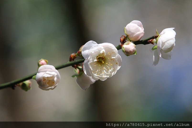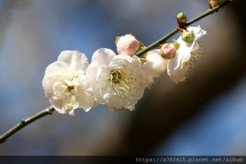 ,園區梅花包括:白梅、純香梅花與粉色的宮粉梅,目