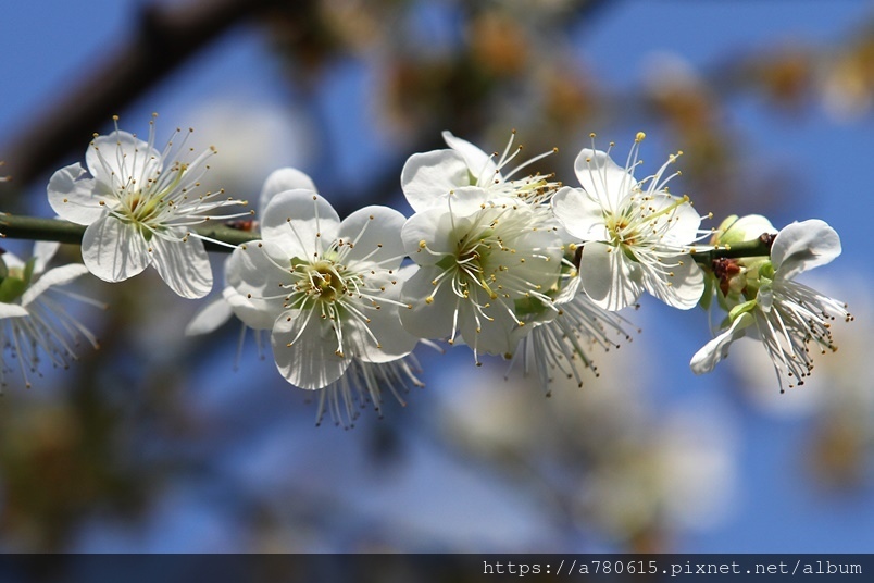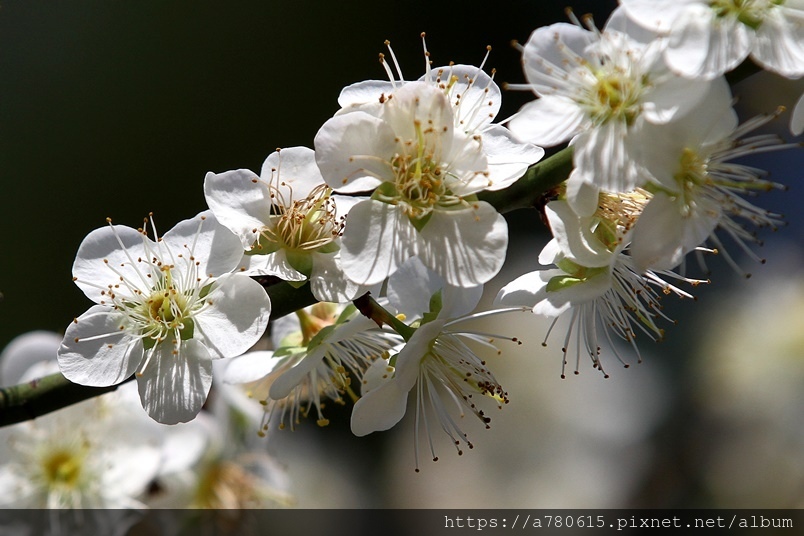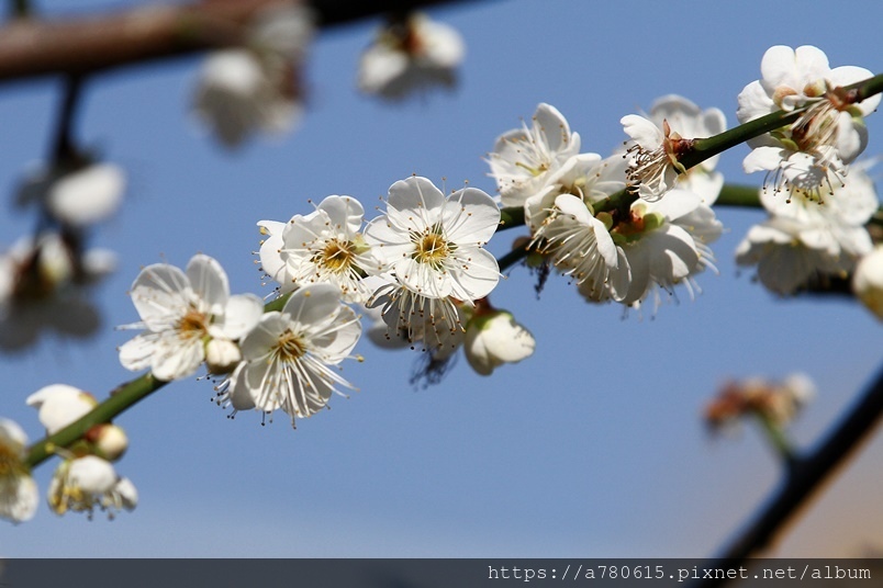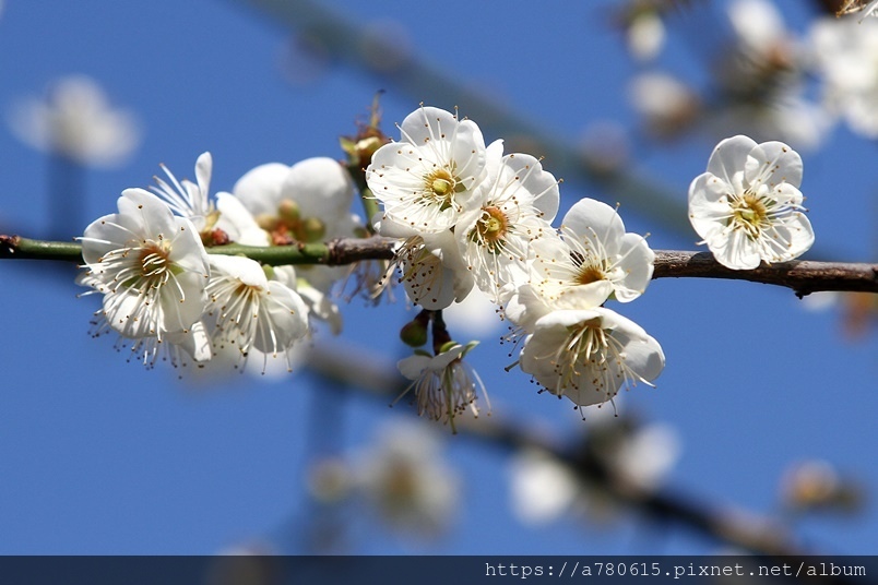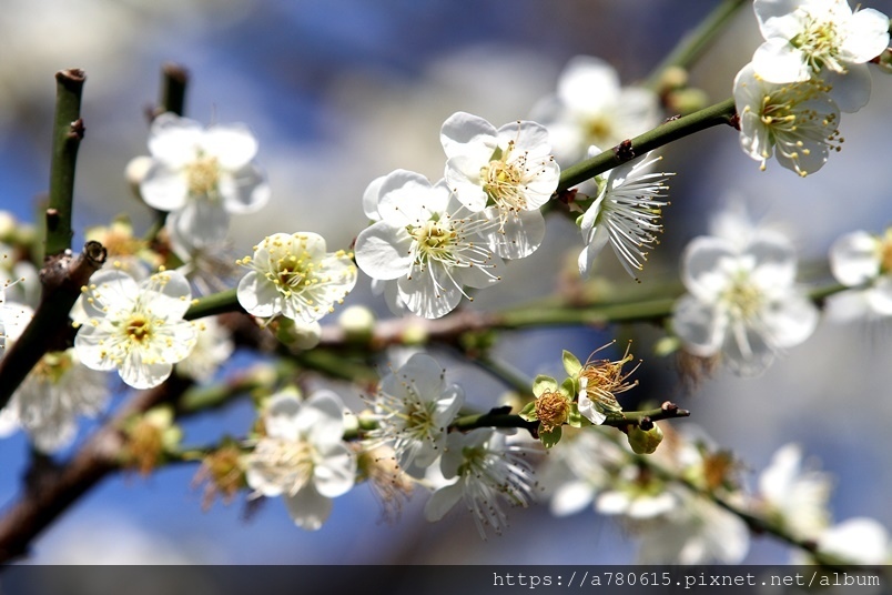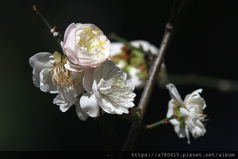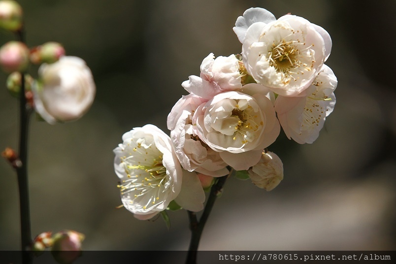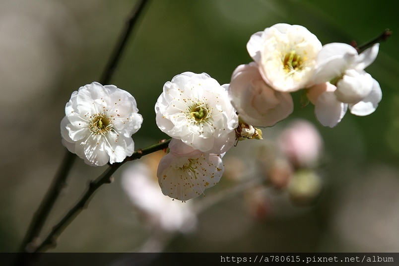 ,園區梅花包括:白梅、純香梅花與粉色的宮粉梅,目