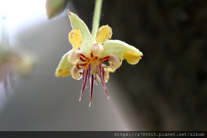 花向下開,具長柄。花萼5深裂,裂片披針形,向後仰。