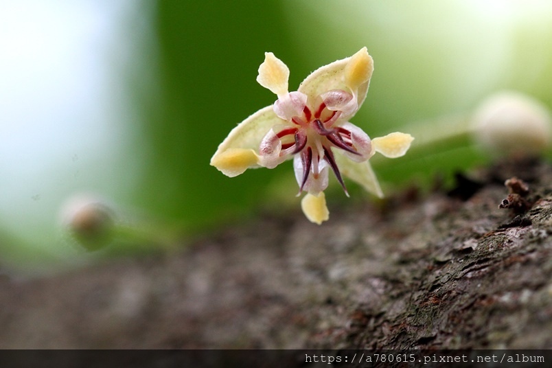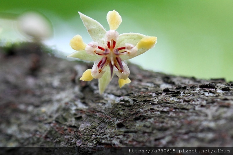 花多數,小,叢生於樹幹上,白色或稍帶粉紅色,花柱