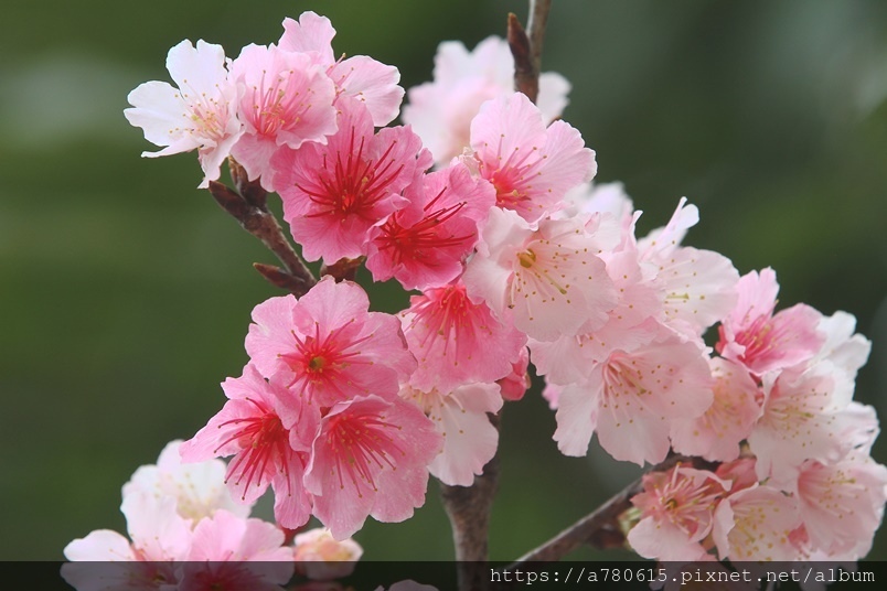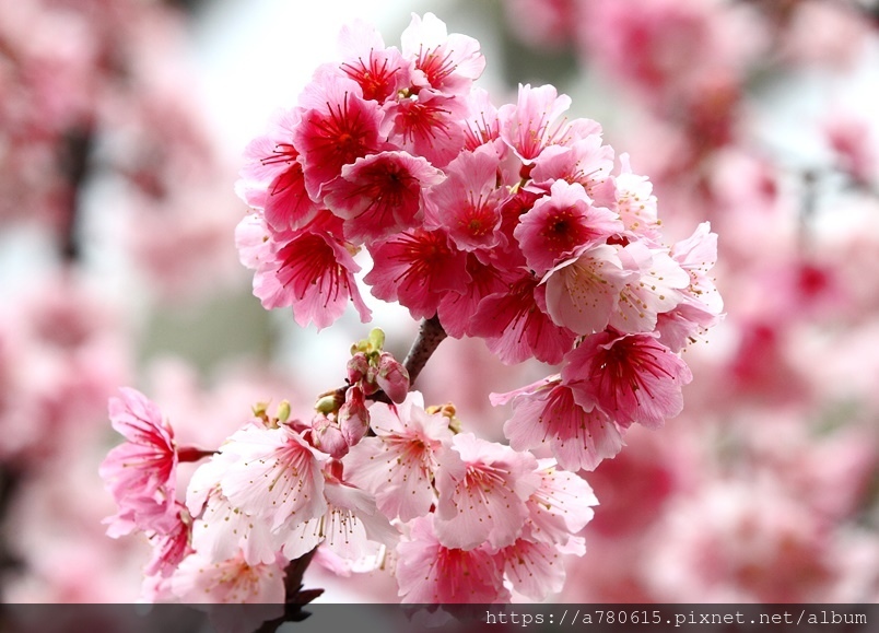 寒櫻因為從初開至滿開呈現三個不同階段色調,所以