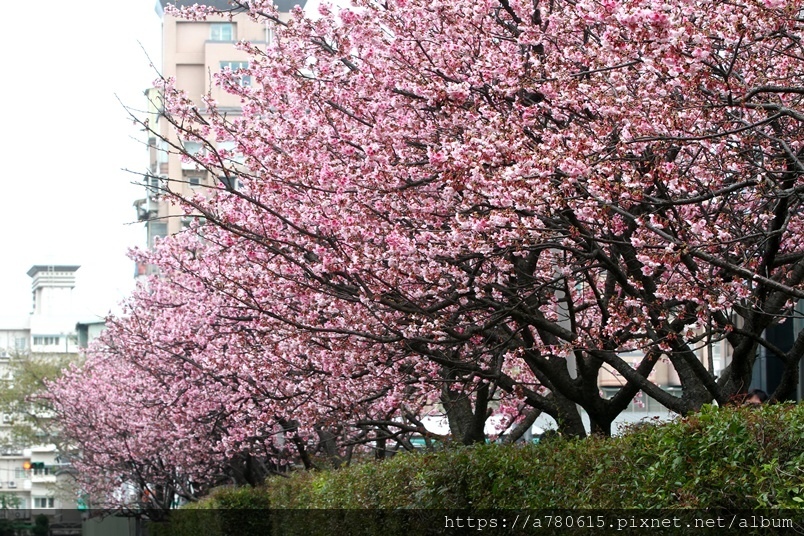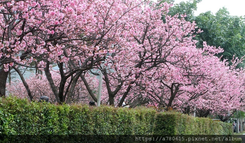 碩總公司門口,種植一整排的寒櫻,每年盛開時都吸