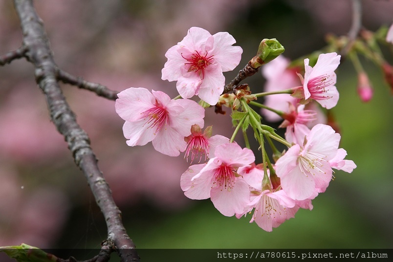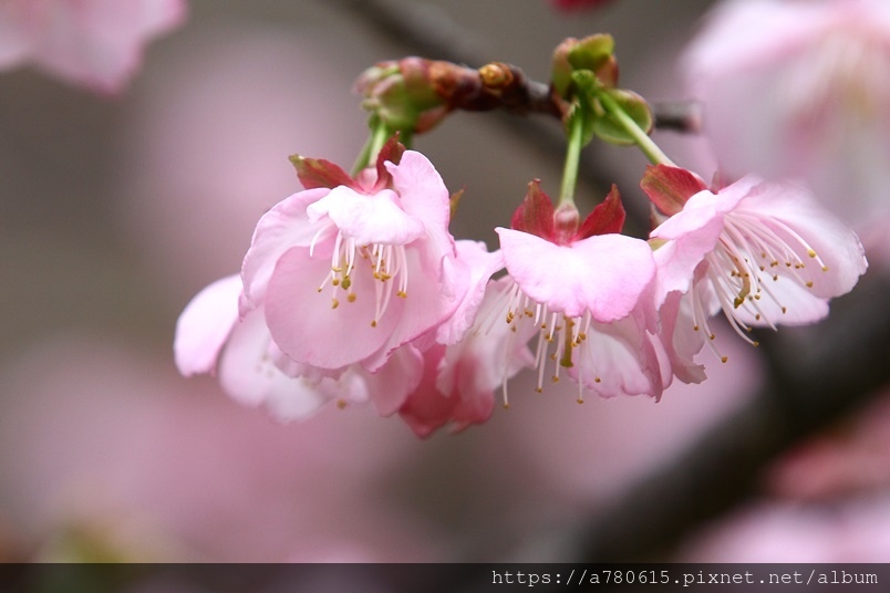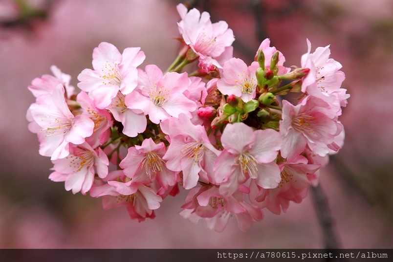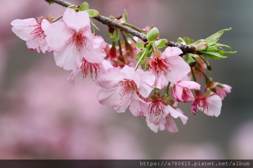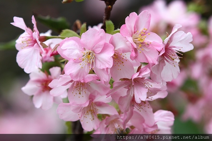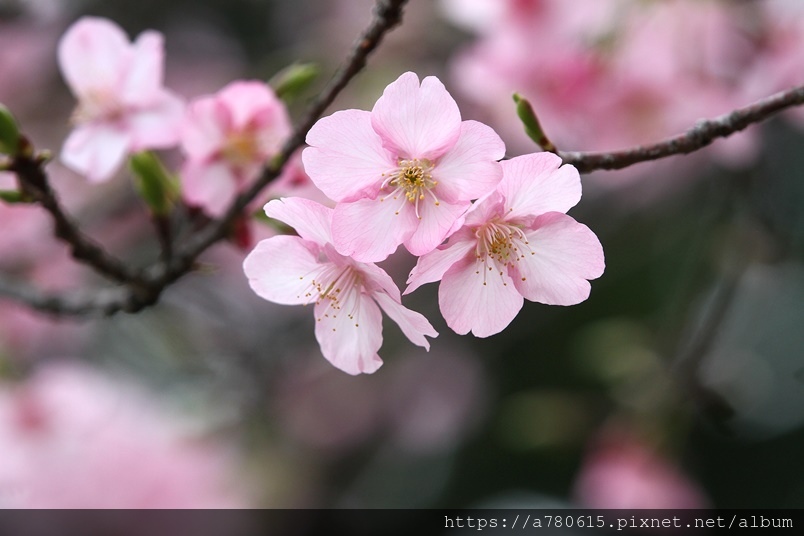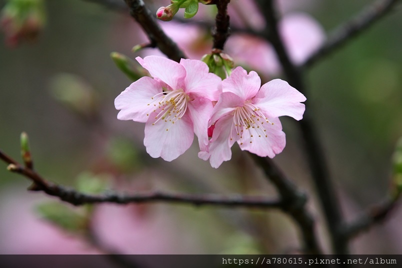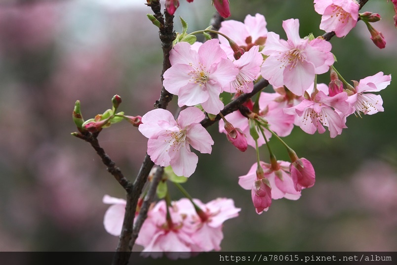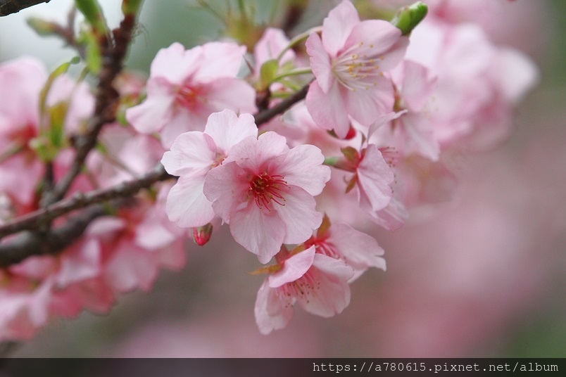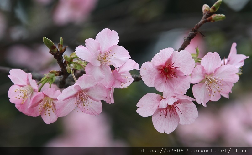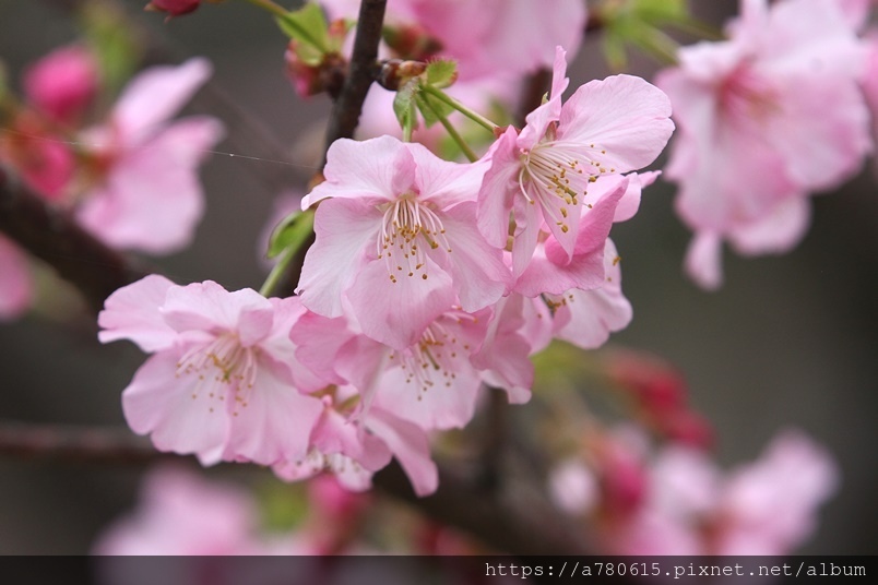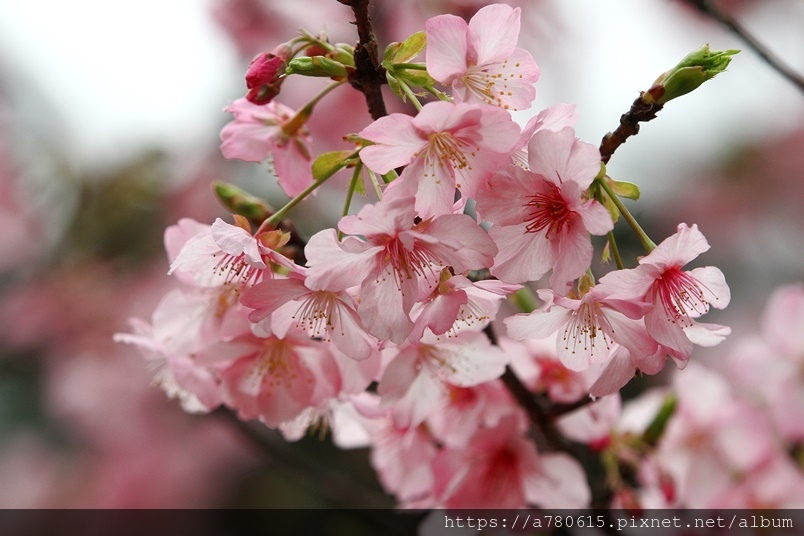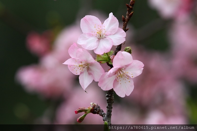 國立中央大學中大湖畔河津櫻已在春節後盛開,整片