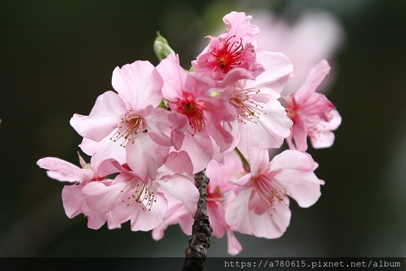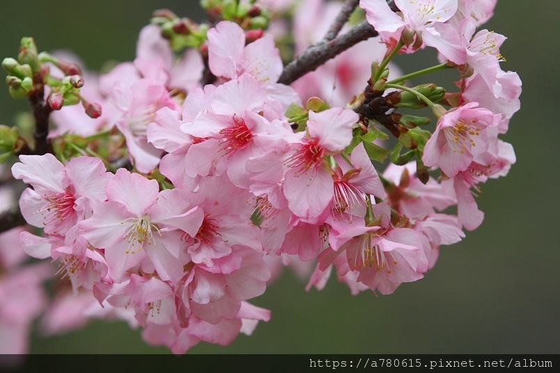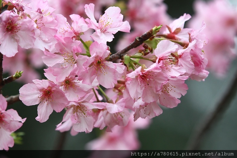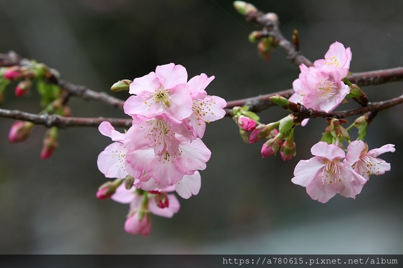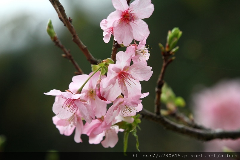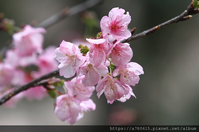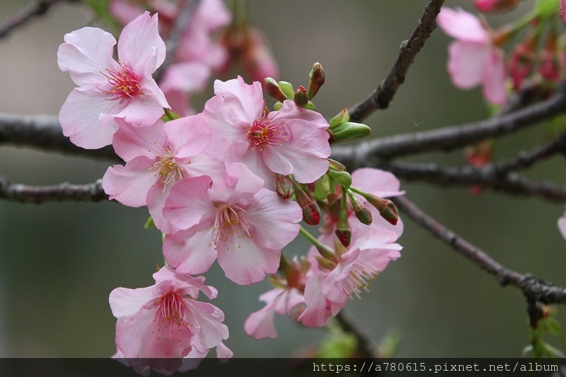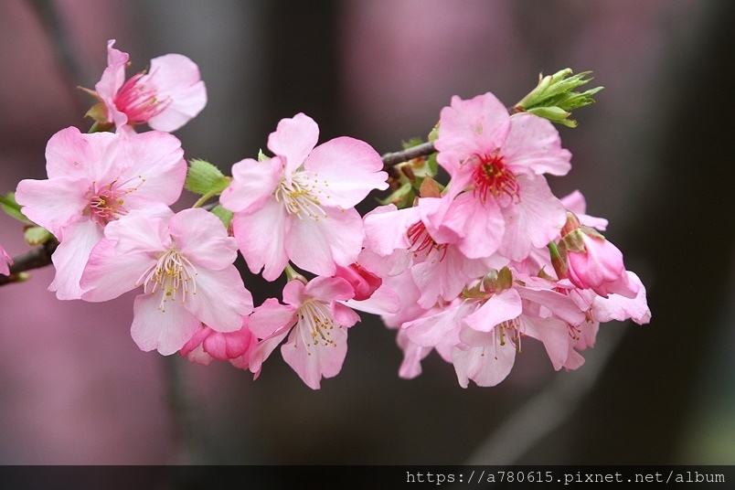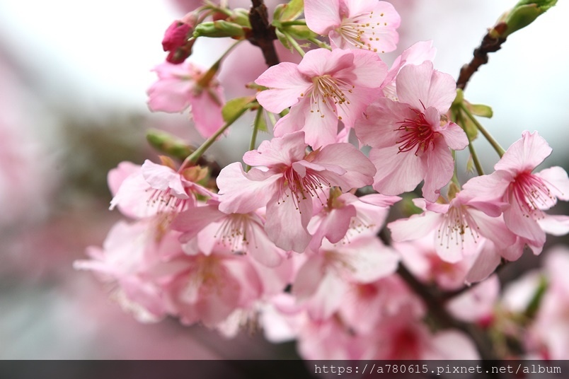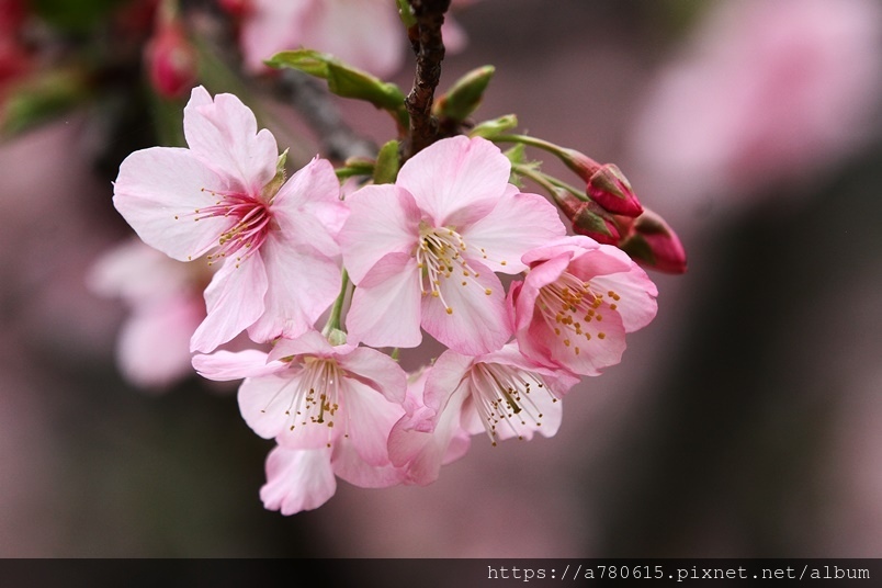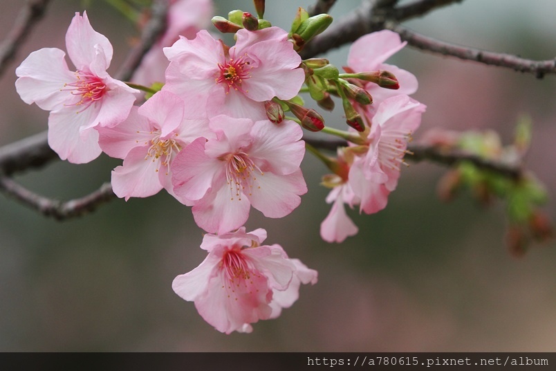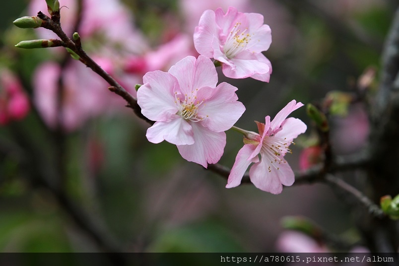 國立中央大學中大湖畔河津櫻已在春節後盛開,整片