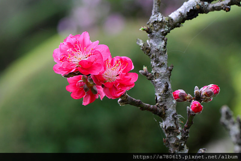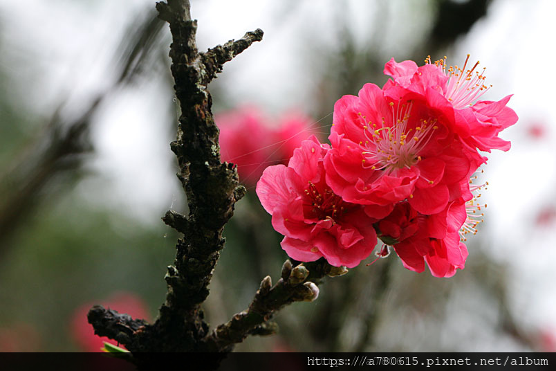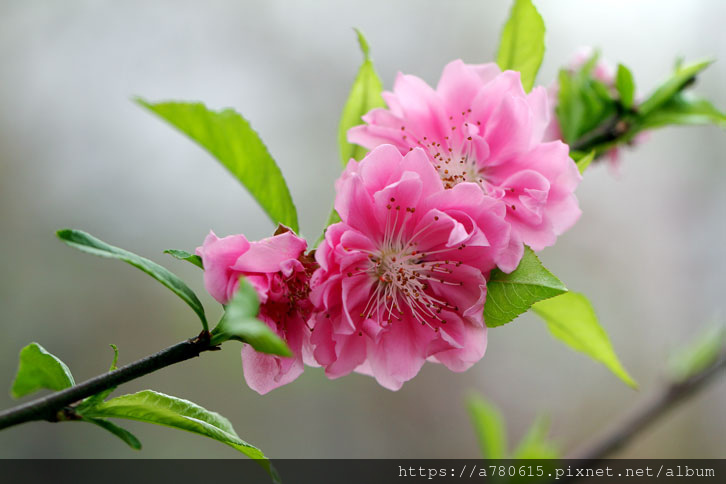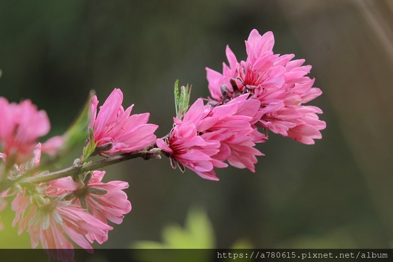 花單生或兩朵生於葉腋,花朵重瓣,開粉紅色花,也有白色和深紅色花的變種,原產于大陸西北、華北、華東和西南等地,花期為2~3月間。