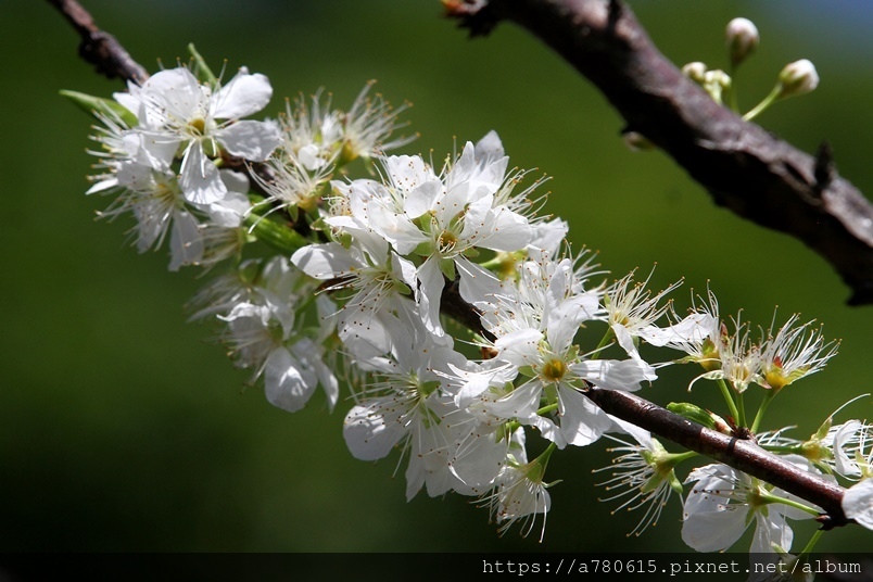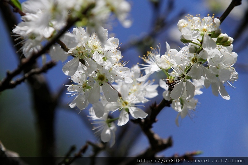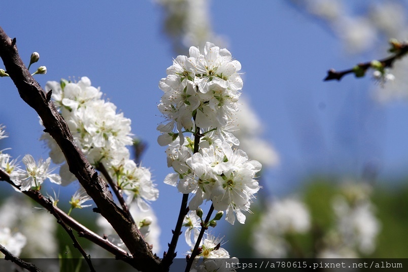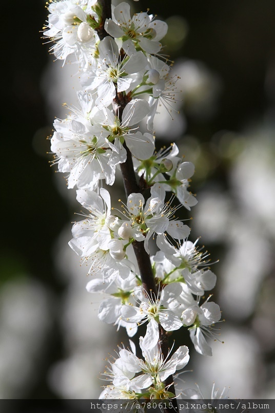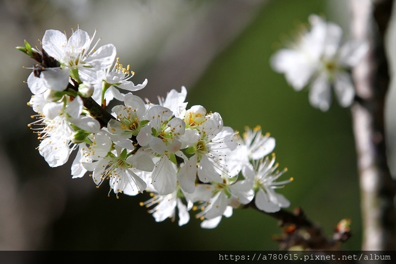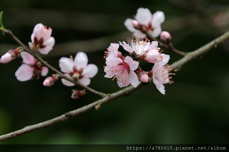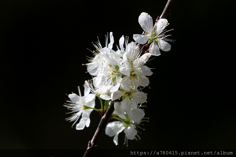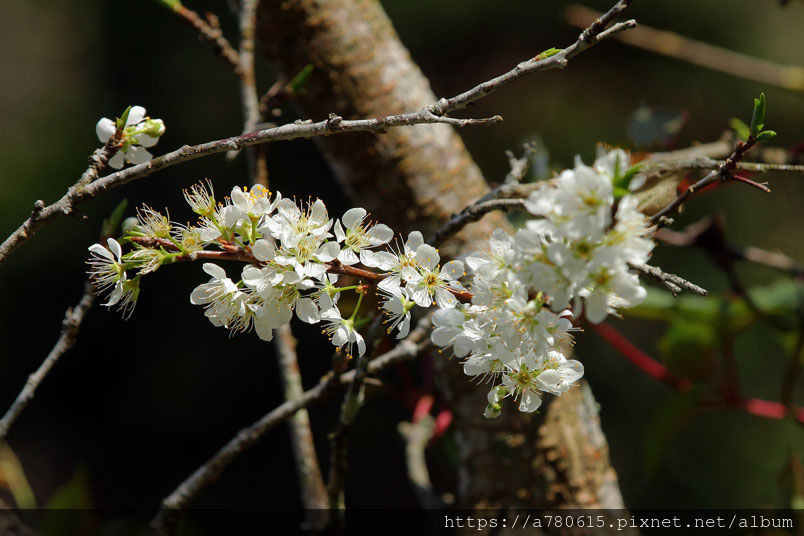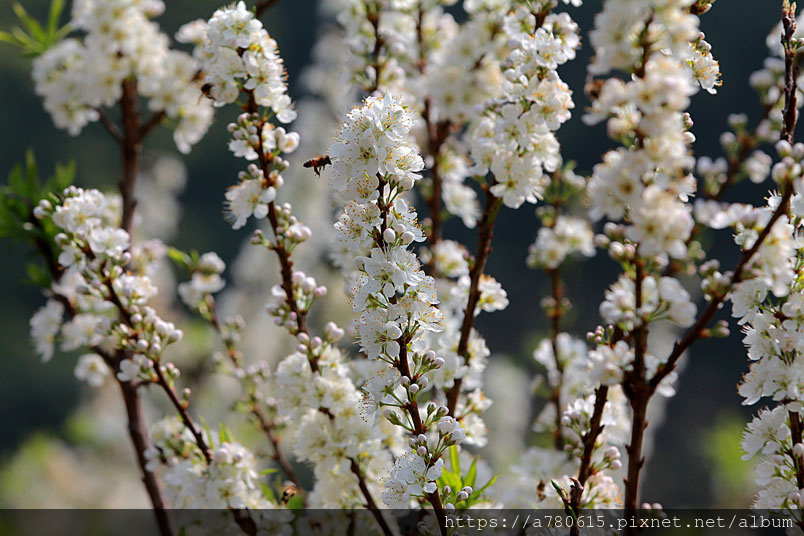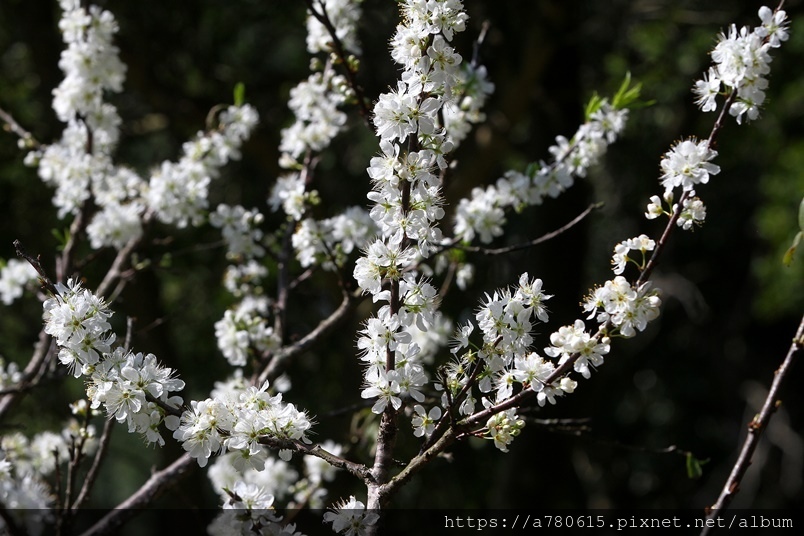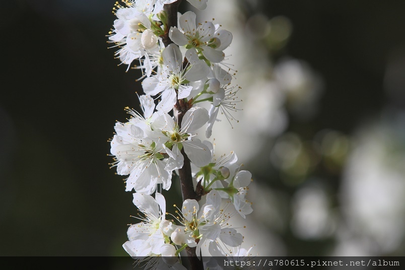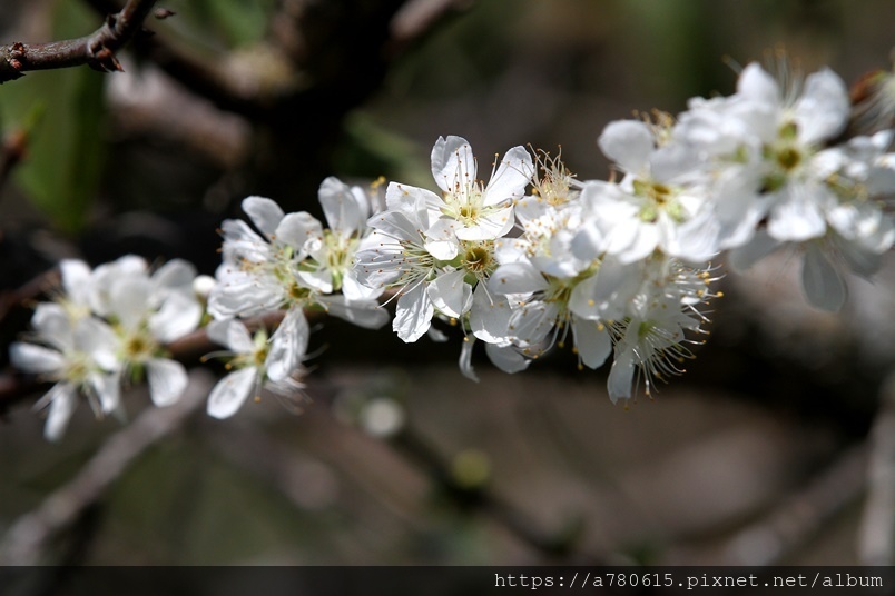 李花的花梗較長,通常開得很密集,枝條佈滿密密