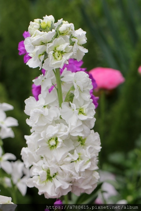 花為總狀花序頂生或腋生,小花密集呈柱形,花形單瓣或重瓣且具有香氣,顏色有粉、紅、紫、白、黃等色。具有濃郁芳香。開花期冬至春季。
