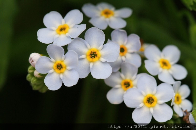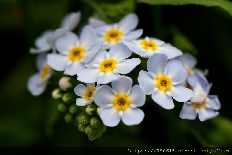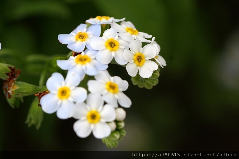 勿忘草花朵中間有一個黃色的圈,這個黃圈所在的地