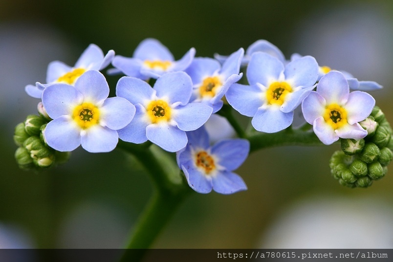 勿忘草株形柔美,莖枝纖細,無數朵小藍花開滿莖頂