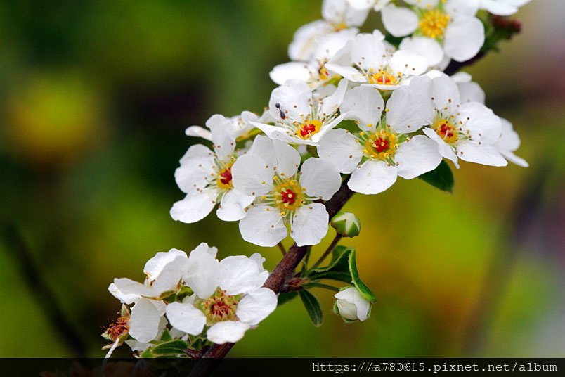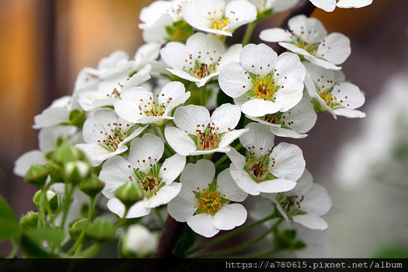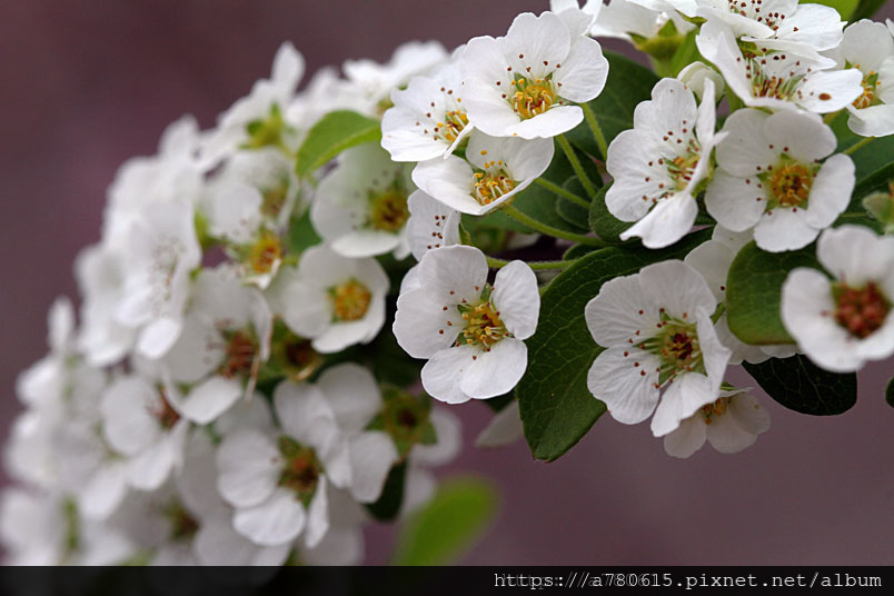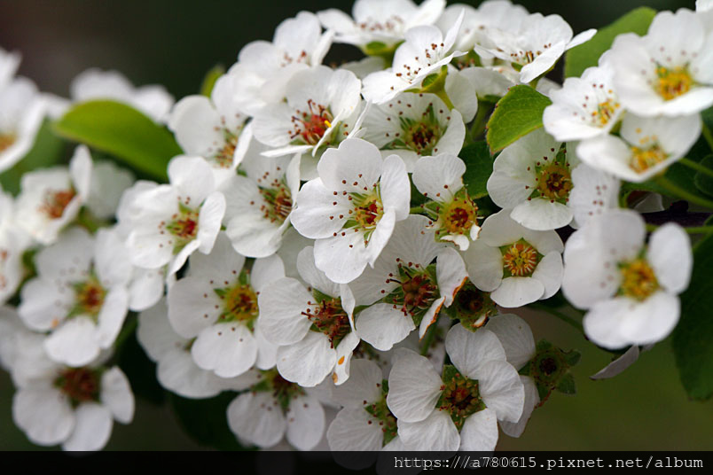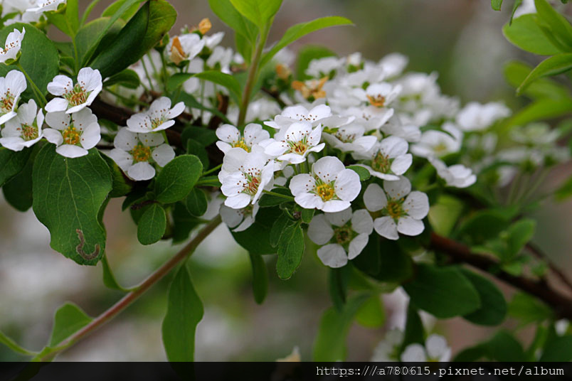如春風笑靨,因而得名。其花細密雪白,亦稱珍珠花