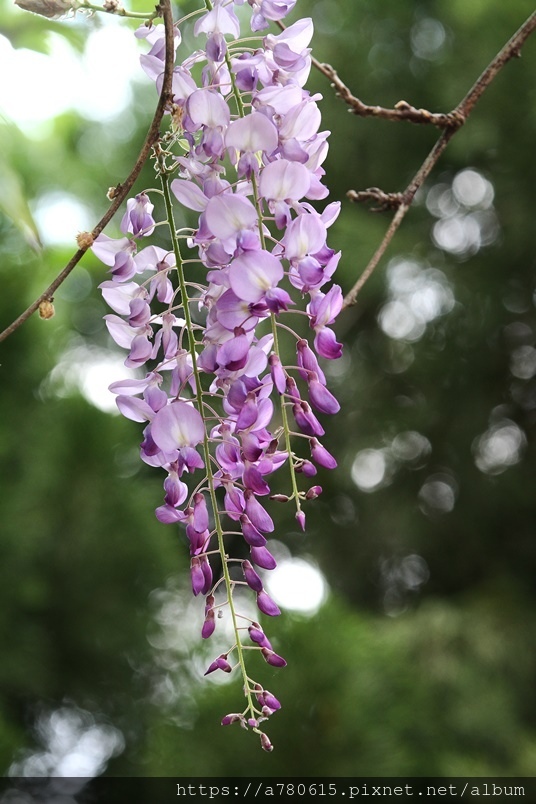 紫藤給人浪漫優雅的感覺,因其淡紫色蝶型花成串垂