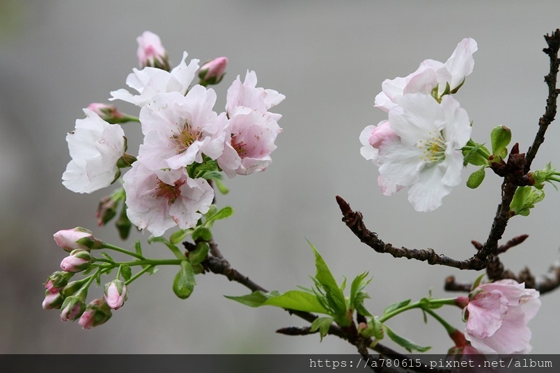 墨染櫻初開時,純白淡雅。幾天過後,慢慢轉為如水