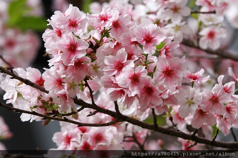 墨染櫻花徑約3.5-4公分,一般花期3月中下旬至4月初。