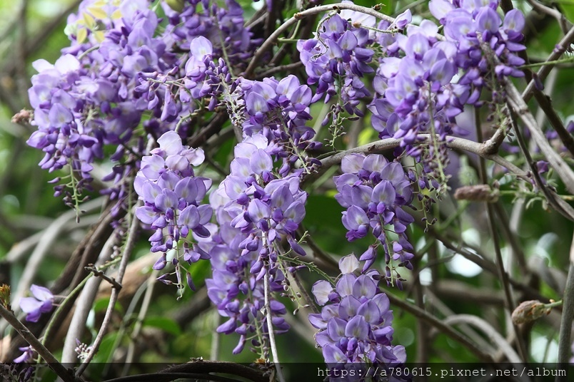 開得比較多,不過漫步在紫藤花廊下,欣賞著一串串如