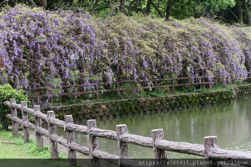 雖然今年紫藤的花況不如以往,僅有靠近水塘的一邊花